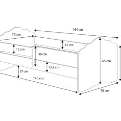 A fiókokkal rendelkező gyerekágyak rengeteg helyet spórolnak: az ágy alatti térből praktikus tároló lesz. Ágynemű, plédek, játékok vagy szezonális holmik is elférnek, így a szoba rendezettebb marad – és a takarítás is egyszerűbb.