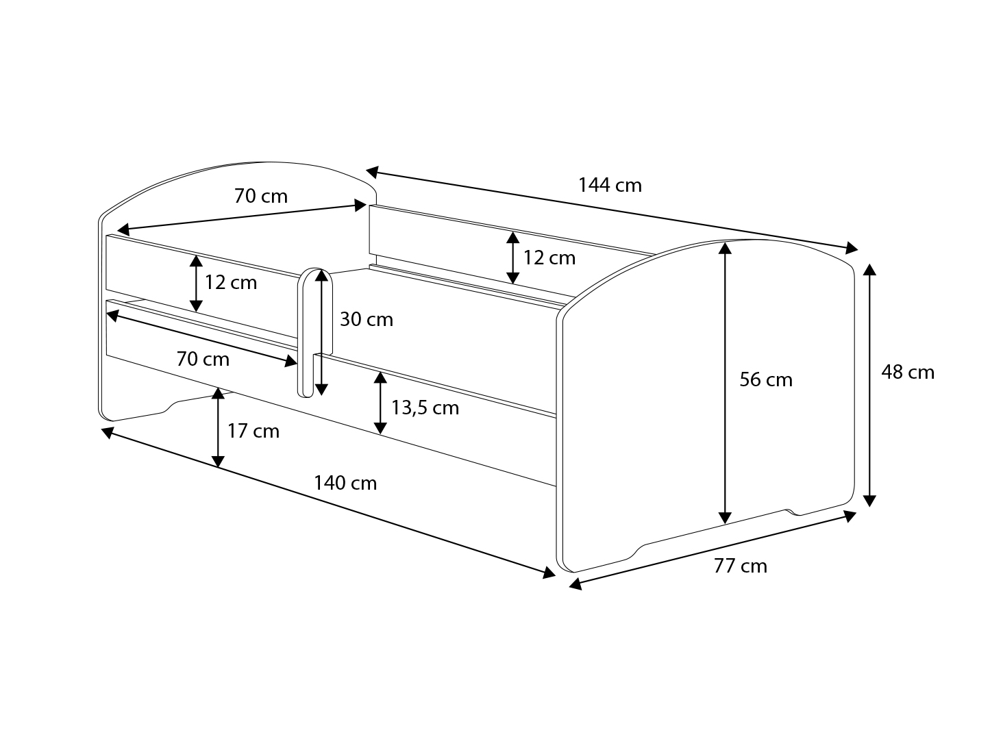 Fekvőfelület (cm): 140×70