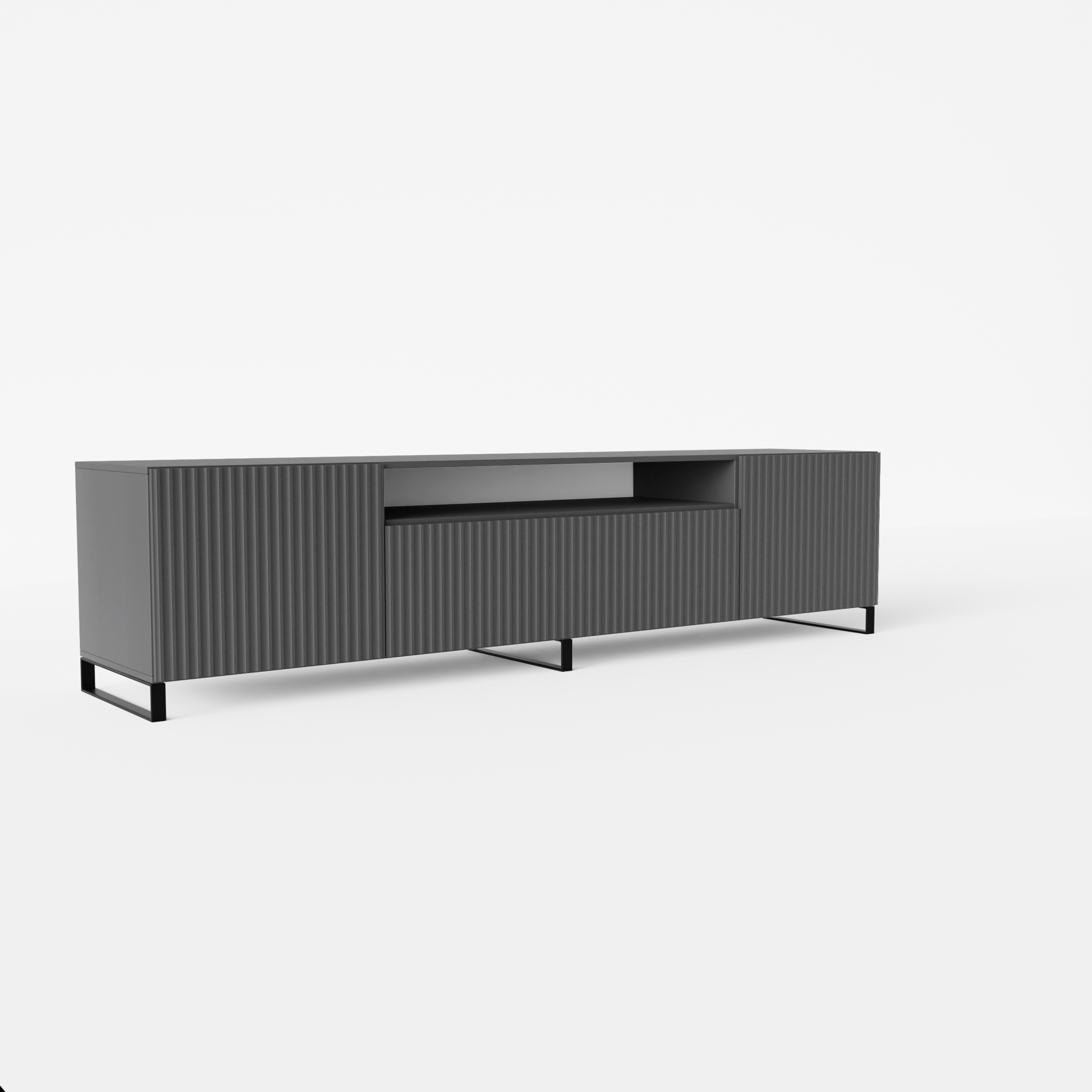 Leírás: A Noemi TV szekrény egy modern, elegáns és funkcionális TV szekrény, tökéletes választás modern belső terekbe. Egyedi jellemzője a bordázott kivitelezés, amely karaktert és textúrát ad a bútornak. A szekrény úgy van tervezve, hogy megfelelő rekeszeket és polcokat tartalmazzon, hogy helyet biztosítson különféle elektronikai eszközöknek, mint például TV, dekóder, játékkonzol és sok más.