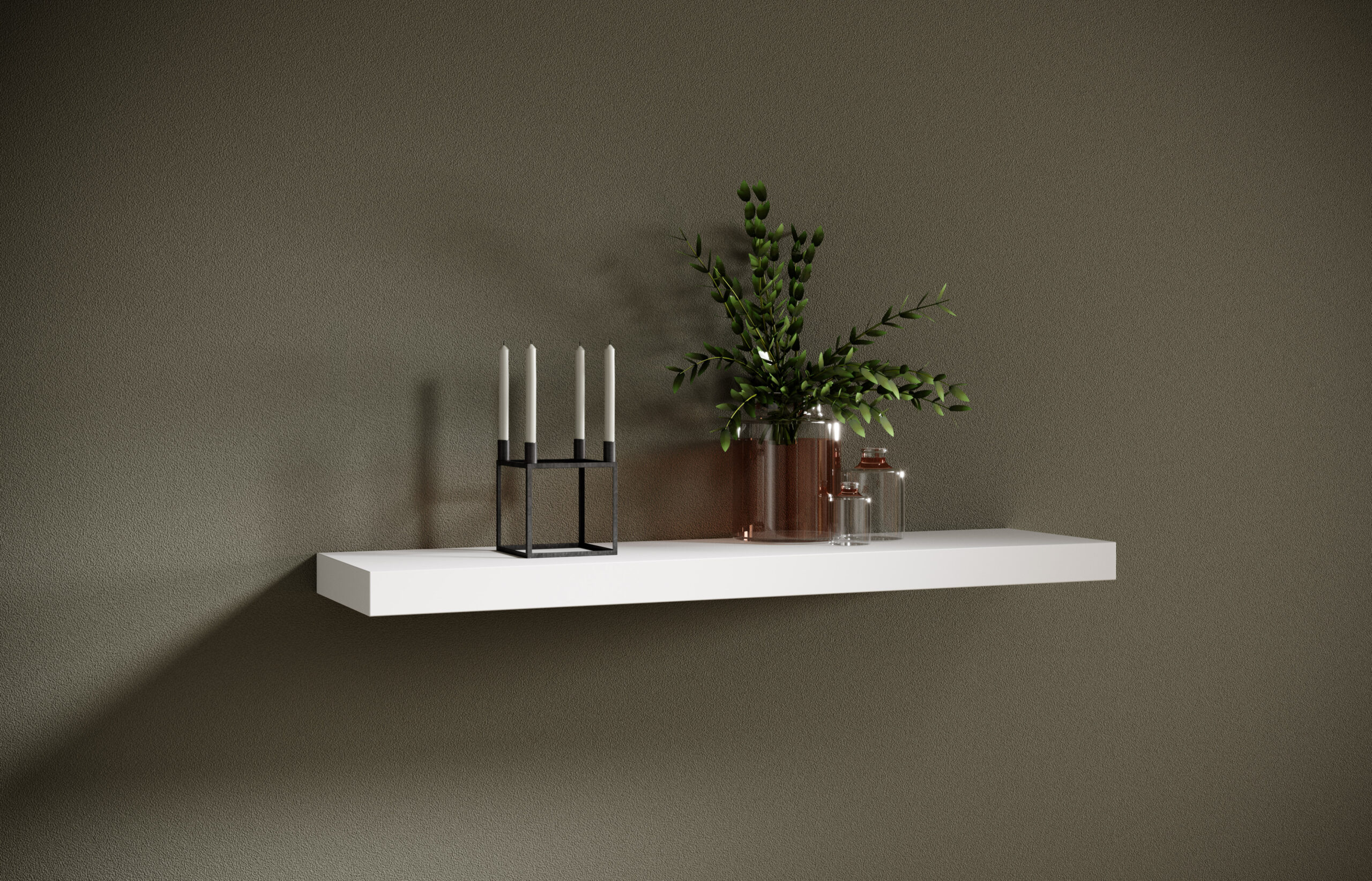 A lebegő polc hatása a letisztultság: a rögzítés nem látszik, a polc „úszik” a falon. Modern terekben, minimalista nappalikban és skandináv stílusban különösen népszerű. A hangsúly a tiszta vonalakon és az egyszerű formán van.