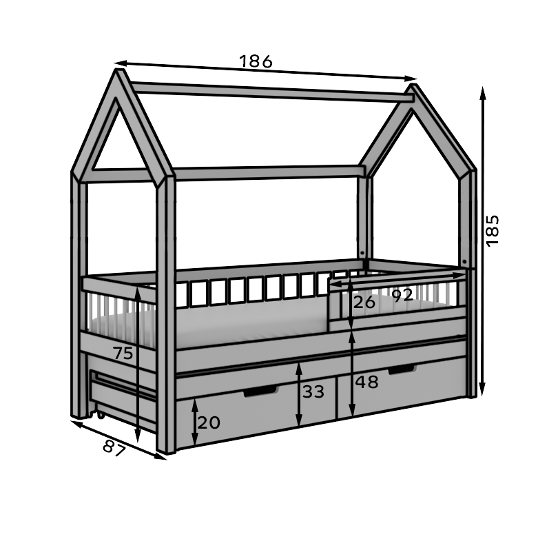 Leírás: Az Artes II Cottage ágy ideális megoldás azok számára, akik egyszerre keresnek eredeti dizájnt és praktikus megoldásokat egy gyermek- vagy tinédzserszoba számára. Ez a modell egy **kétszemélyes ágy**, amely egyedi házikó formájával könnyen bármely enteriőr középpontjává válhat. Az ágy **kiegészítő tárolófiókokkal** van felszerelve, amelyek segítenek a tér rendszerezésében, lehetővé téve az ágynemű, játékok vagy más alapvető tárgyak tárolását. Ezáltal gyermeke több helyet kap a játékhoz és a tanuláshoz. Az Artes II ágy egyik legnagyobb erőssége a **moduláris kialakítás**. A házikó alakú váz könnyen szétszedhető, így gyermeke változó igényeinek megfelelően klasszikusabb ágymodellé alakítható.