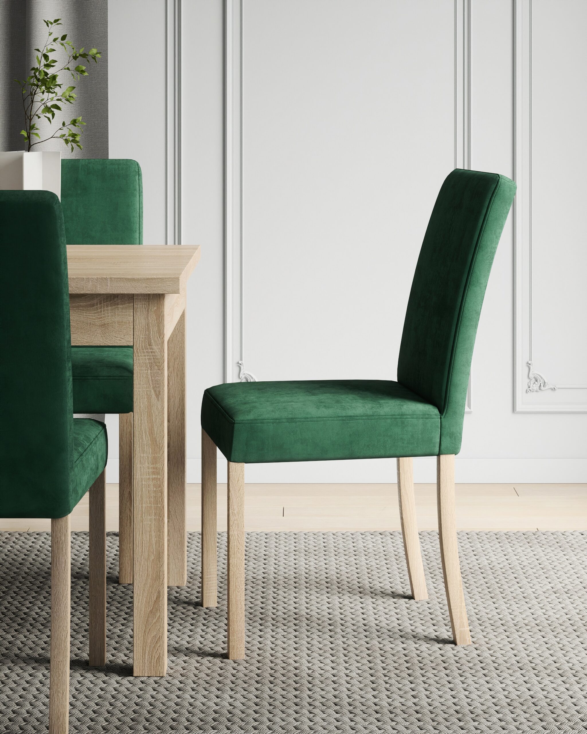 Merészebb megoldás, ha az étkező szék adja a színt (például zöld, kék, terrakotta árnyalat), és az asztal marad semleges. Ez modern, karakteres hatást ad, mégis könnyen frissíthető: ha pár év múlva új színt szeretnél, elég csak a székeket cserélni, az asztal maradhat.