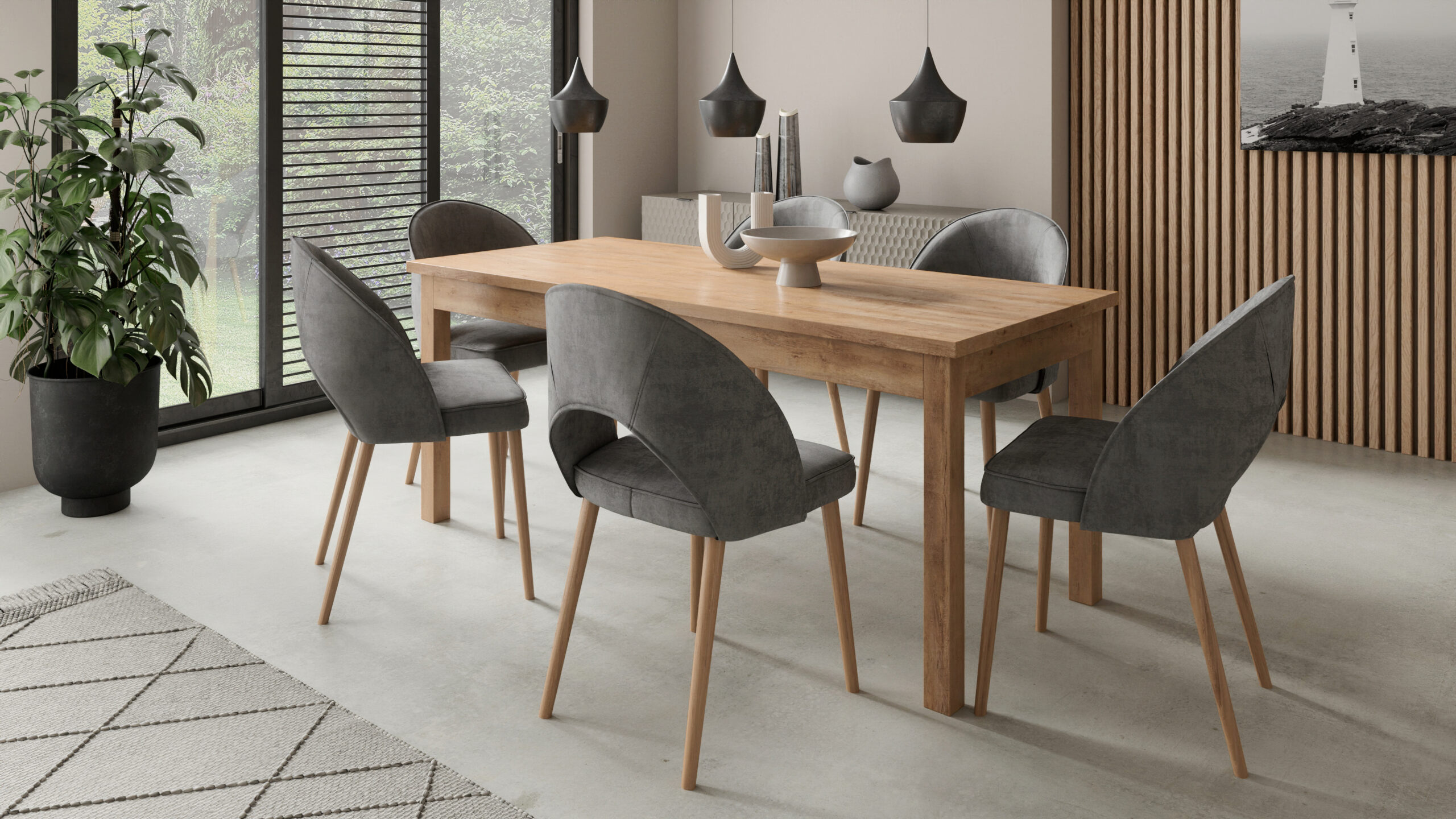 3) Zárd le kiegészítőkkel: lámpa, szőnyeg, tálalószekrény, falikép. A jó asztal és szék összeállítás a kiegészítőkkel válik igazán otthonossá – ettől érzed majd, hogy a tér tényleg a tiétek.