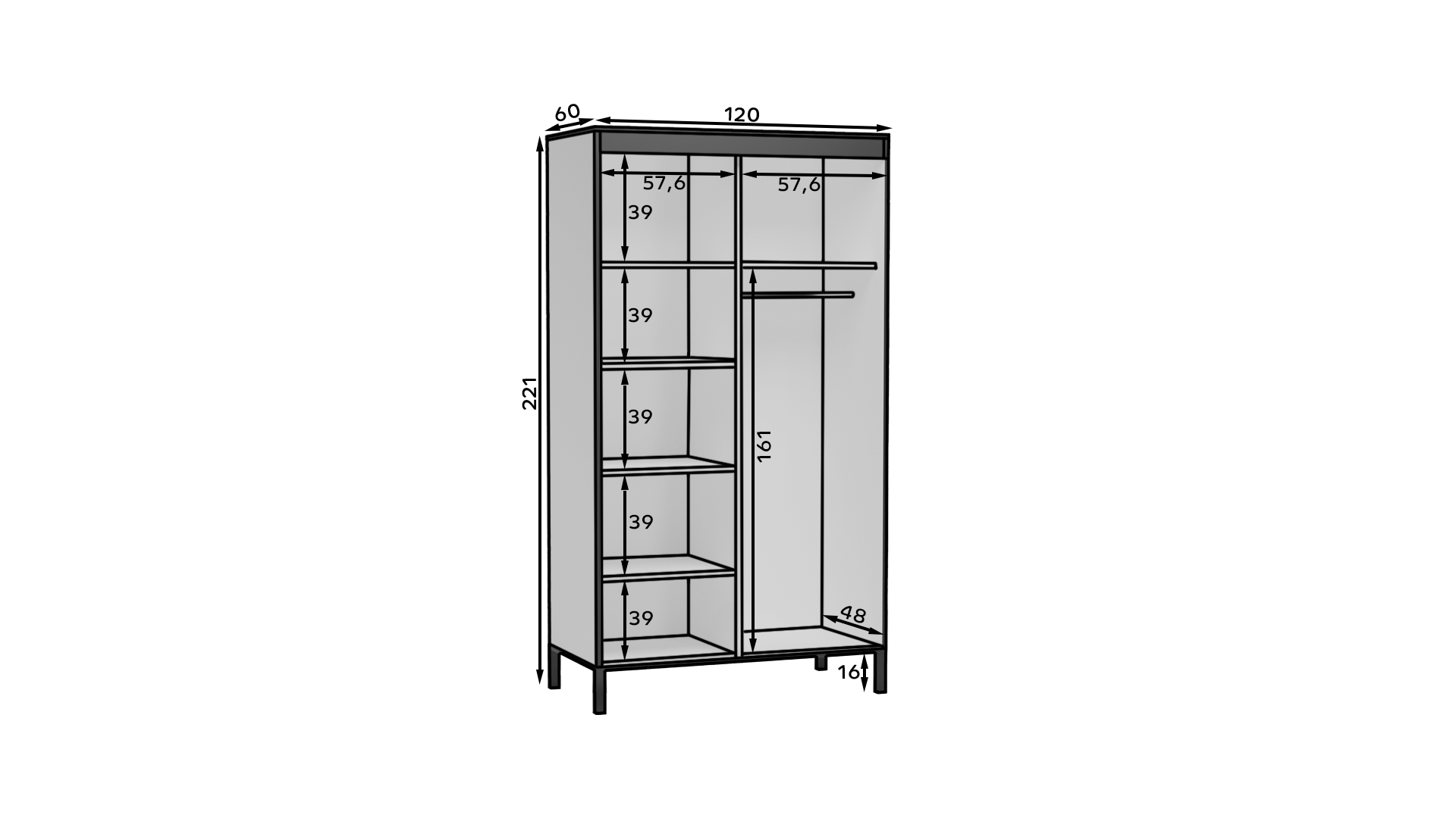 - Két szintű akasztós részt (ingek, blúzok, zakók) – így több ruha fér el gyűrődés nélkül.