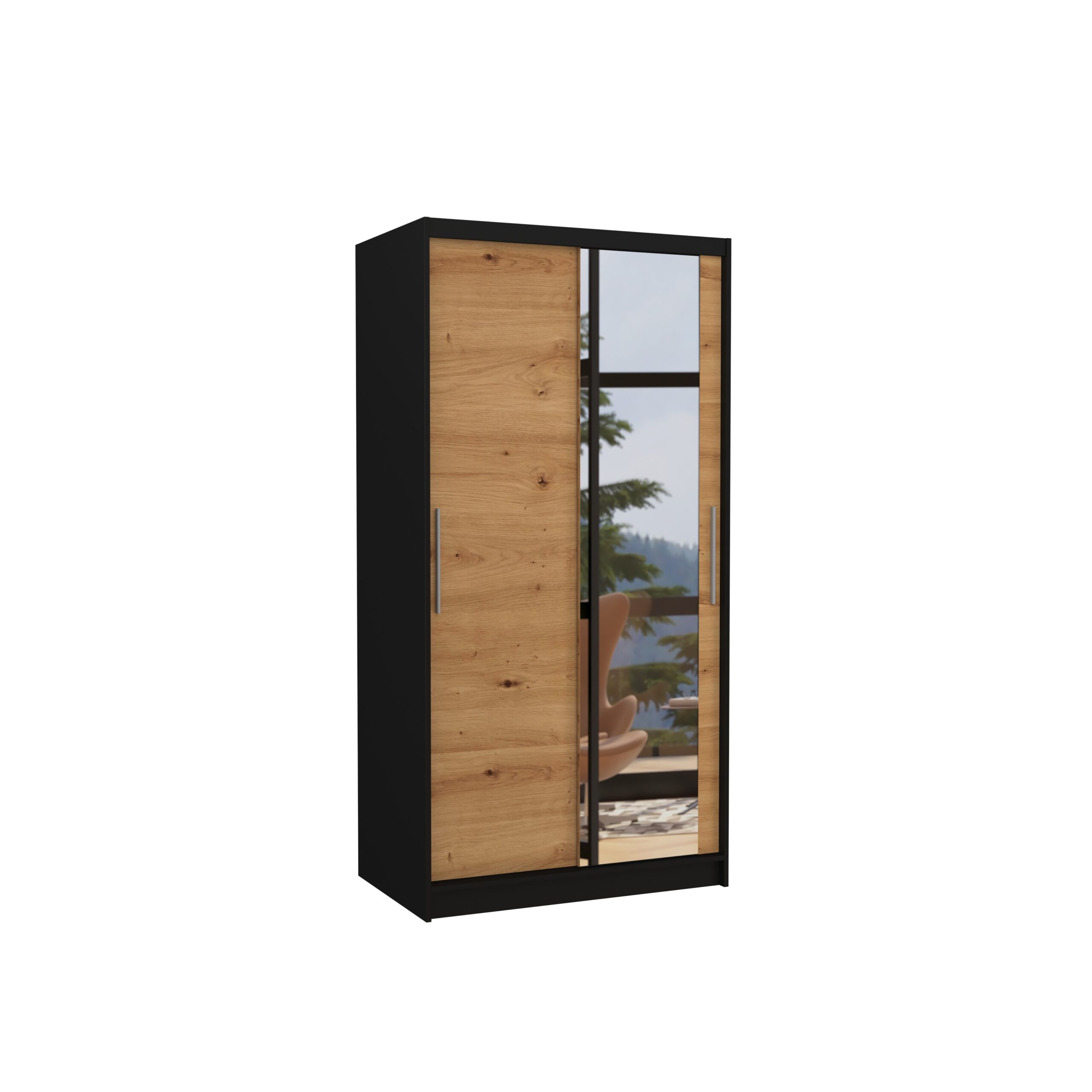 Tolóajtós gardrób Biztonsági tükrös tolóajtós szekrény BAROS 100 – Fekete