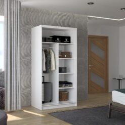 Leírás: A BAROS tolóajtós szekrény tükörrel tökéletes megoldás a tér rendezésére. A bútor tágas polcokkal és ruhásszárítóval van felszerelve, ahol fel tudod akasztani ruháidat, öltönyeidet, külső ruházatodat vagy ingeidet. Az előlapján elhelyezett tükör optikailag nagyobbá teszi a teret. A tolóajtós kialakításnak köszönhetően nem szükséges külön helyet szánni az ajtónyitásra, így tökéletes megoldás kis szobák vagy keskeny előszobák számára.