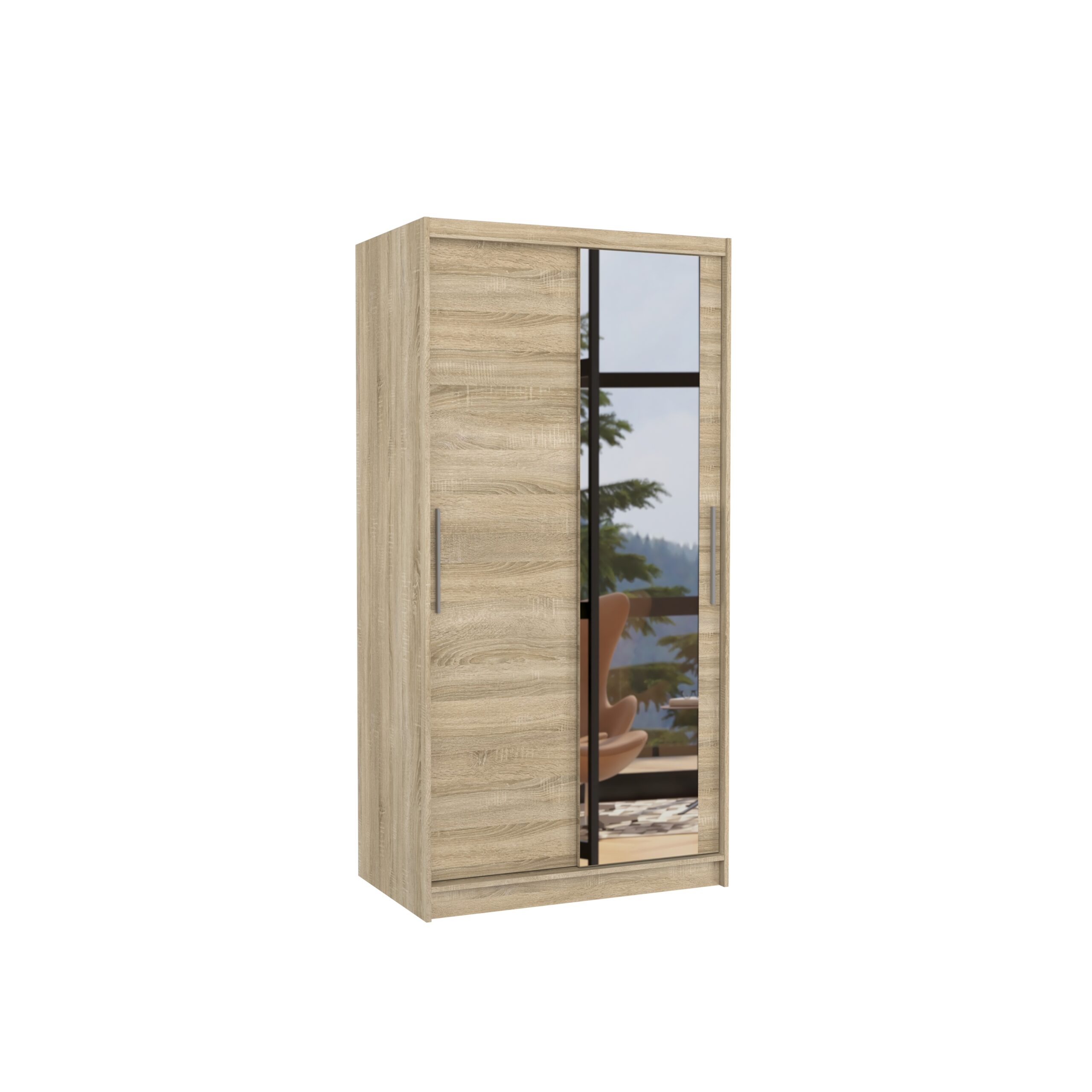 Tolóajtós gardrób Biztonsági tükrös tolóajtós szekrény BAROS 100 – Sonoma
