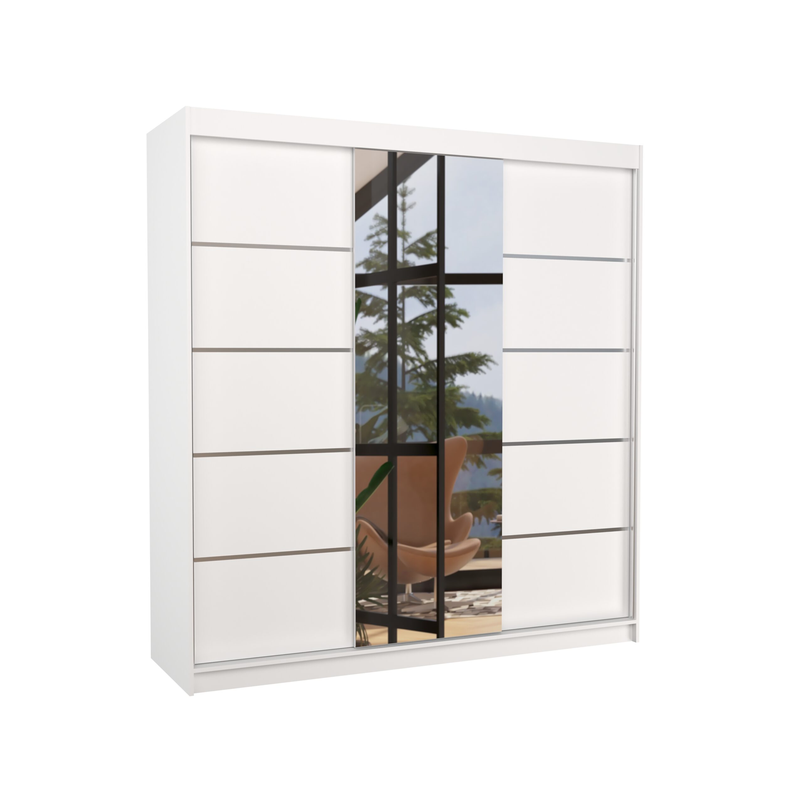 Tolóajtós gardrób Biztonsági tükrös tolóajtós szekrény BERGEN 200 – Fehér