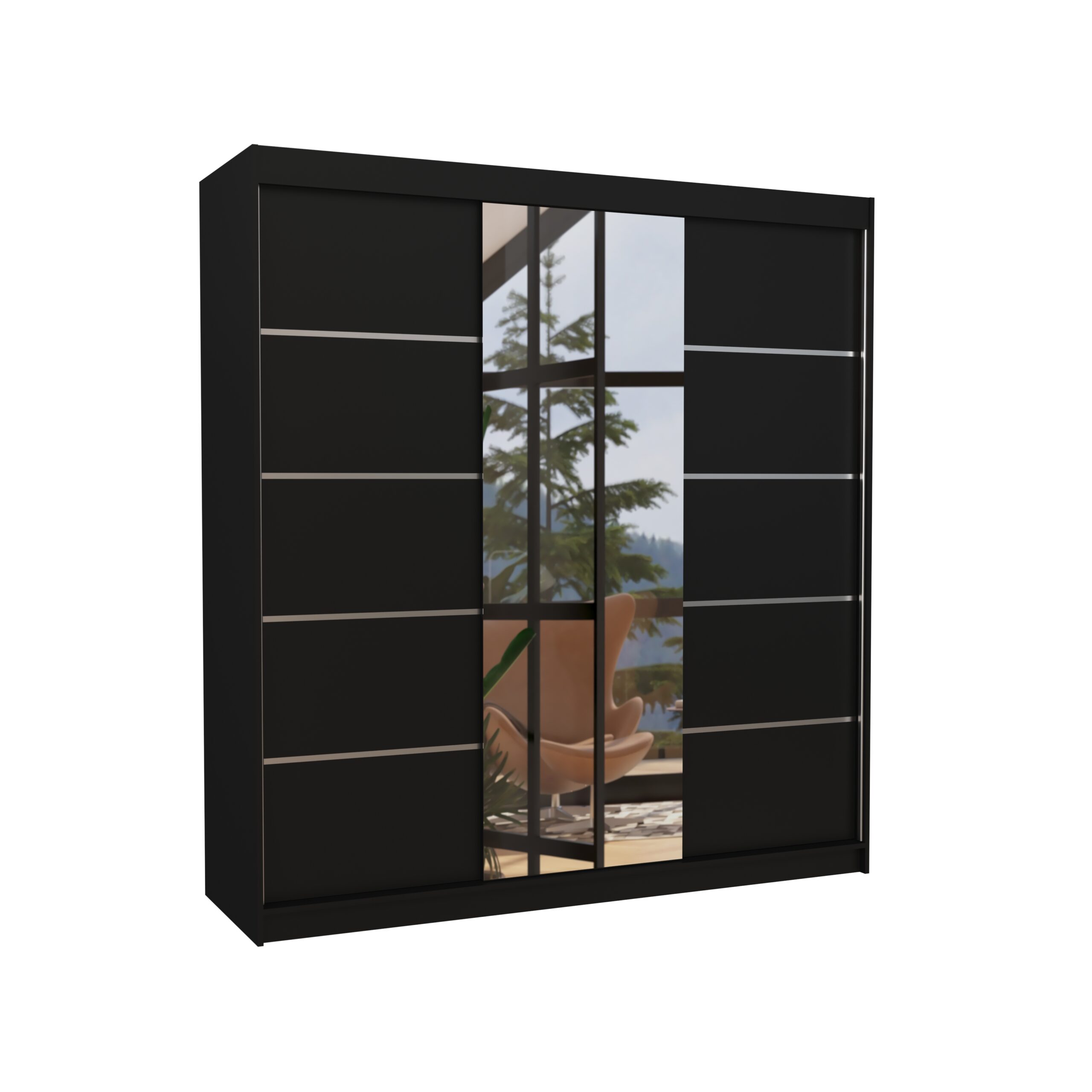 Tolóajtós gardrób Biztonsági tükrös tolóajtós szekrény BERGEN 200 – Fekete