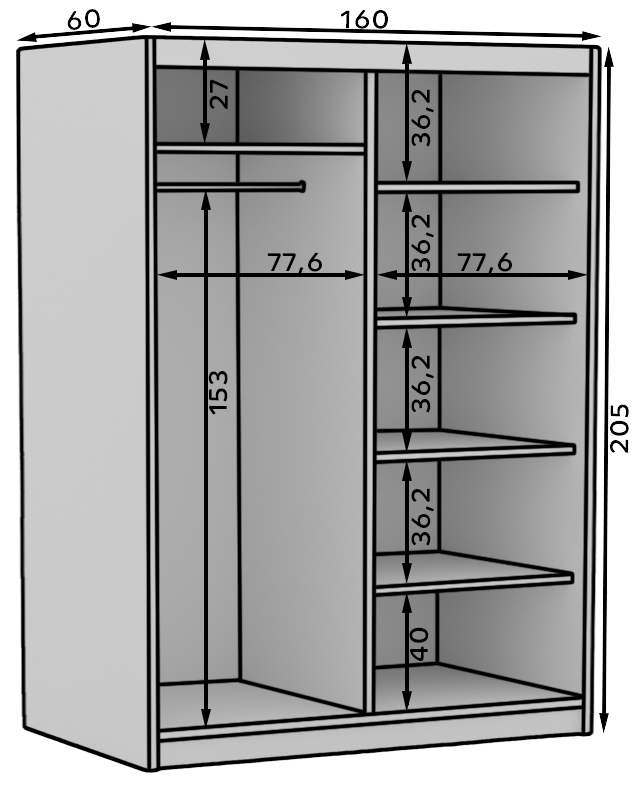 Tolóajtós gardrób DELIA 180 tolószekrény – Artisan