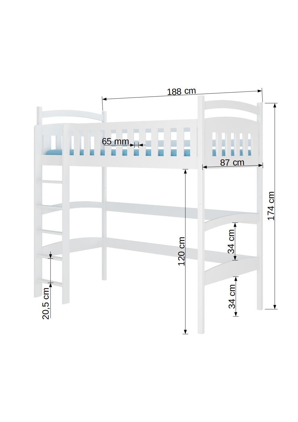 Leírás: A MIAGO emeletes ágy az emeleti verziója egy gyermek számára. Ez tökéletes megoldás kis területekhez. A felső rész kényelmes alvóhelyként szolgál. Az ágy alatti helyet tárolásra, munkára vagy játékra lehet használni. A készlet tartalmazza a rugalmas nyírfából készült erős vázat. Matrac nincs az ágyhoz mellékelve.