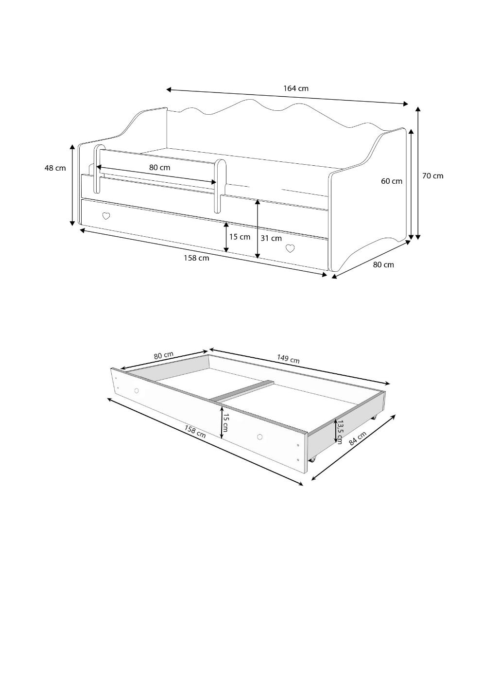 Leírás: Az EMKA kollekcióból származó egyszemélyes ágy egyszerű formájú, fehér matt színű kivitelezésével tökéletesen illeszkedik egy tinédzser vagy gyerekszoba belső terébe. A szett részét képezi egy tágas és funkcionális, kerekeken gördülő fiókos szekrény, valamint egy kényelmes, habmatraccal és levehető huzattal ellátott matrac. Továbbá, ha szükséged van további alvóhelyre, ajánljuk figyelmedbe az EMKA II modellt, amely rendelkezik egy alvó funkciójú fiókkal.