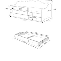 Leírás: Az EMKA kollekcióból származó egyszemélyes ágy egyszerű formájú, fehér matt színű kivitelezésével tökéletesen illeszkedik egy tinédzser vagy gyerekszoba belső terébe. A szett részét képezi egy tágas és funkcionális, kerekeken gördülő fiókos szekrény, valamint egy kényelmes, habmatraccal és levehető huzattal ellátott matrac. Továbbá, ha szükséged van további alvóhelyre, ajánljuk figyelmedbe az EMKA II modellt, amely rendelkezik egy alvó funkciójú fiókkal.