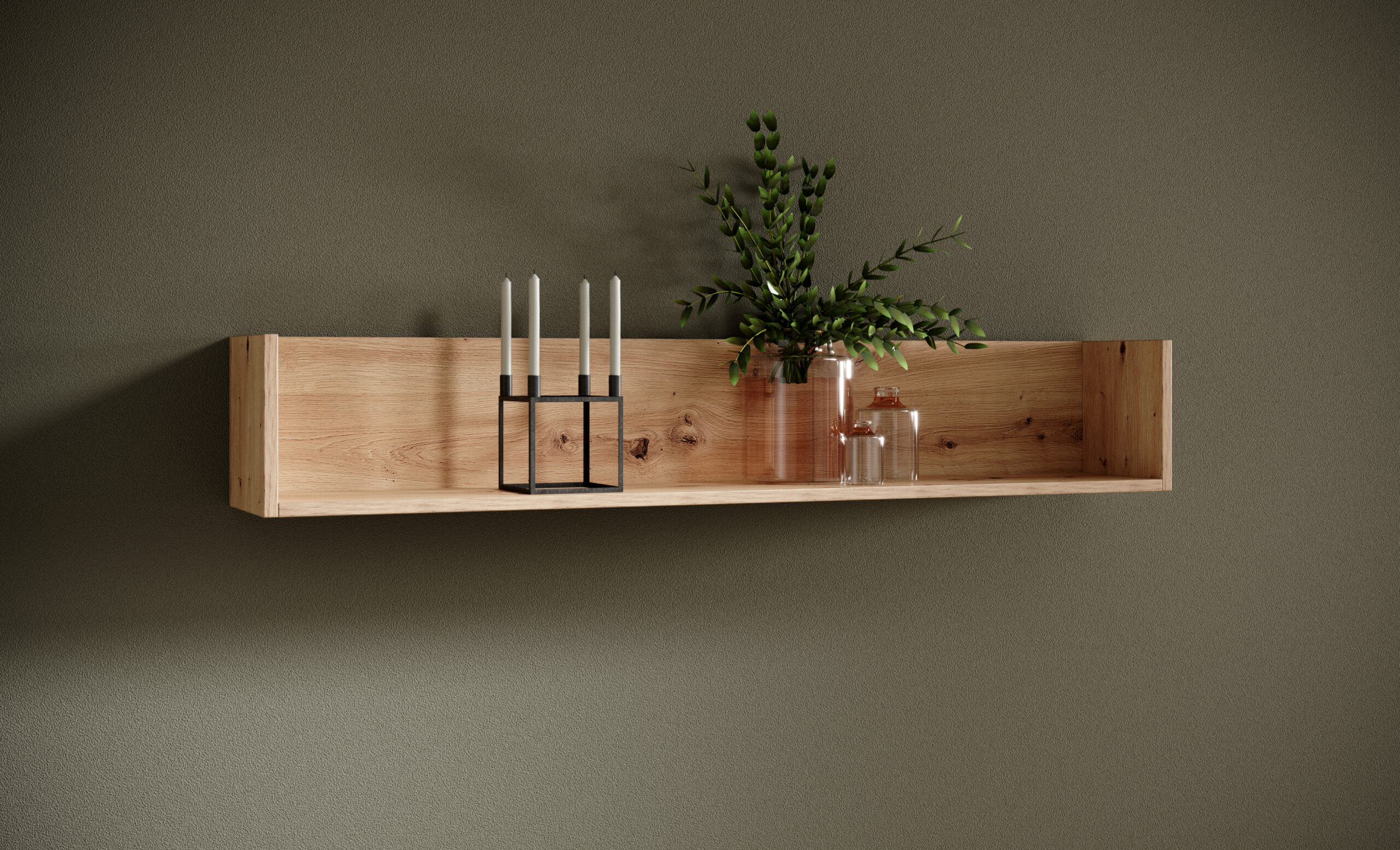 Skandináv terekben a világos fa árnyalatok és a fehér fal a nyerő: itt egy letisztult lebegő polc kevés tárggyal nagyon elegáns. Modern-minimal lakásokban a polc lehet sötétebb, grafitos vagy fekete részletekkel – a kontraszt adja a karaktert. Természetes, meleg stílusban a fa hatású felületek (tölgy/sonoma/artisan jelleg) harmonizálnak legjobban, és a polcon jól mutatnak a natúr textúrák, kerámiák, fonott kosarak.