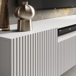 Leírás: A Noemi TV szekrény egy modern, elegáns és funkcionális TV szekrény, ideális a modern belső terekben való használatra. Egyedi jellemzője a bordázott befejezés, amely karaktert és textúrát ad a bútornak. A szekrény úgy lett tervezve, hogy megfelelő rekeszeket és polcokat tartalmazzon, hogy különféle elektronikai eszközöket tudjunk benne tárolni, beleértve a TV-t, dekódert, játékkonzolt és sok más eszközt is.
