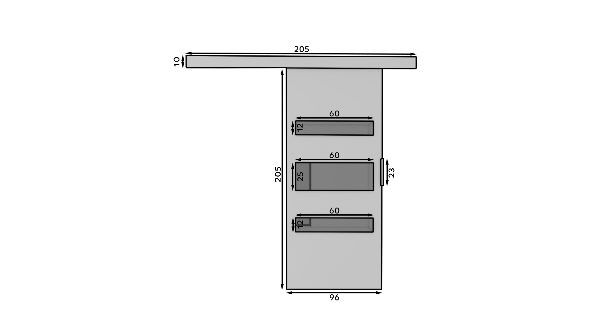 Rács szélessége: 205