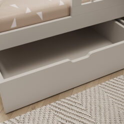 Ha a gyerekszobában kevés a hely, a tárolós megoldások aranyat érnek. Az ágyneműtartós gyermekágy vagy a fiókos kialakítás könnyíti a mindennapokat: elférnek benne az extra takarók, a szezonális ruhák, vagy akár a nagyobb játékok is. A rejtett tároló nemcsak praktikus, hanem vizuálisan is “rendet teremt”, mert kevesebb holmi marad szem előtt.