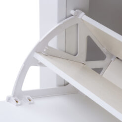 A fehér cipős szekrény világosítja a teret, könnyen kombinálható, és modern, friss hatást kelt. Különösen jó választás sötétebb előszobákba vagy keskeny folyosókra, ahol minden optikai “térnövelés” számít.