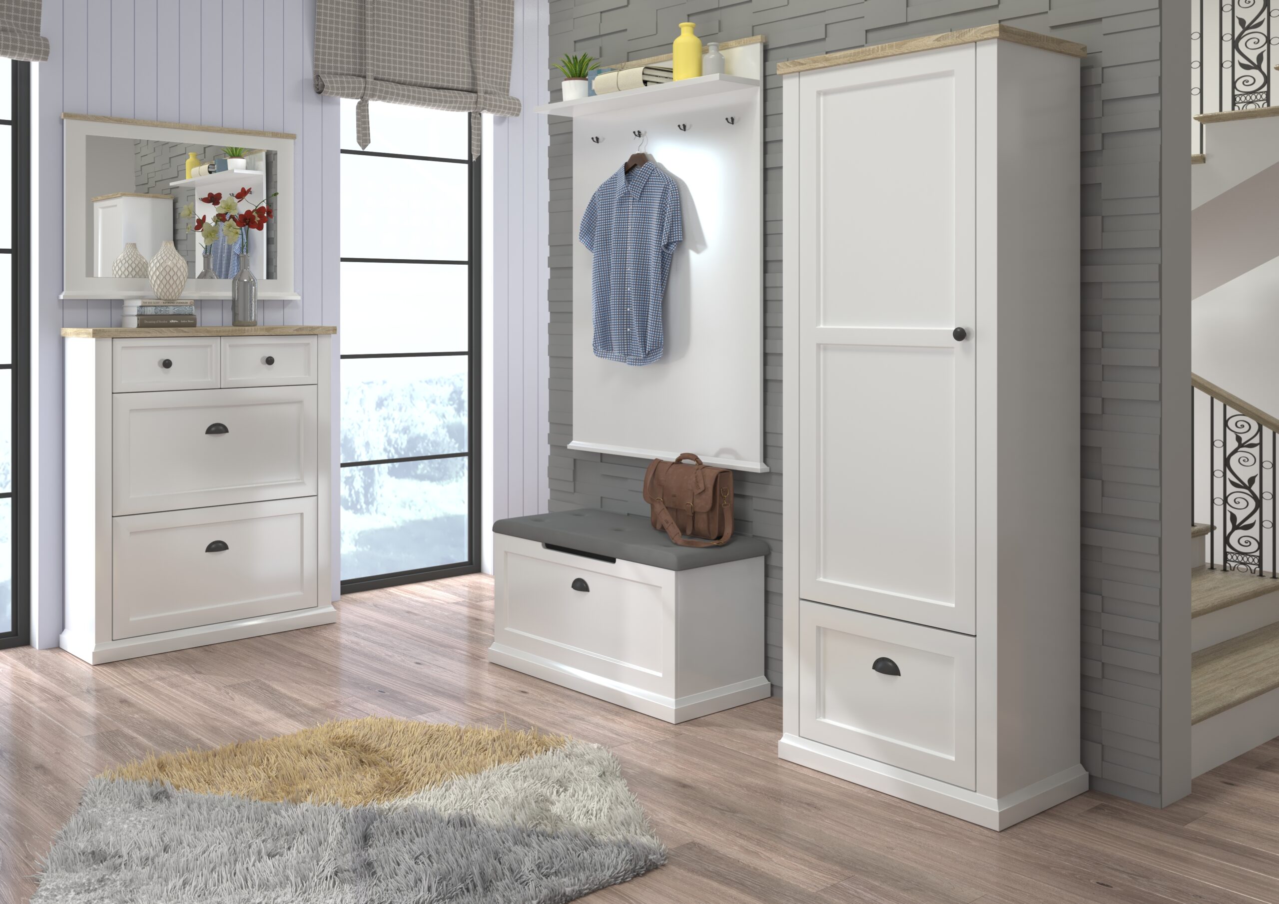 Ha kicsi a tér, érdemes optikailag is “könnyíteni” az összképet: világos fal, világos bútor, nagyobb tükör. Itt a fehér cipős szekrény szinte alapdarab, mert segít, hogy az előszoba ne legyen szűknek, sötétnek érzett átjáró. Szűk folyosón pedig a keskeny cipős szekrény adja azt a megoldást, ami mellett még kényelmesen elférsz kabátban, táskával is.