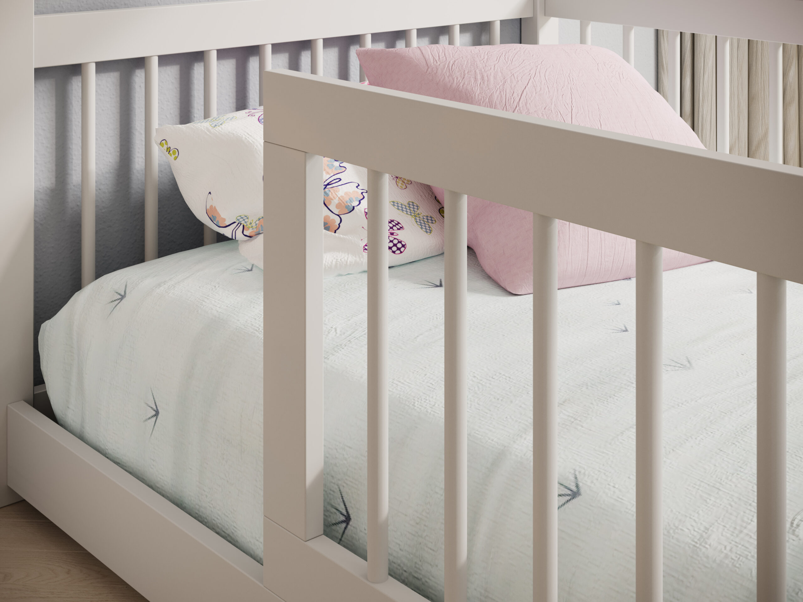 Színek és stílus: fehér, fenyő, szürke – könnyen kombinálható gyerekszoba