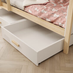 A fiókokkal rendelkező gyerekágyak rengeteg helyet spórolnak: az ágy alatti térből praktikus tároló lesz. Ágynemű, plédek, játékok vagy szezonális holmik is elférnek, így a szoba rendezettebb marad – és a takarítás is egyszerűbb.