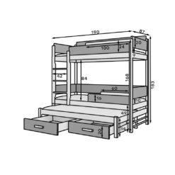 Leírás: A Queen méretű, háromszemélyes emeletes ágy kiváló megoldás a helytakarékos berendezésére kisebb gyermekszobákban. A bútor lépcsős létrával és két tágas, praktikus ágyneműtartó fiókkal rendelkezik. A matracok nem tartoznak az ágyhoz.