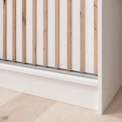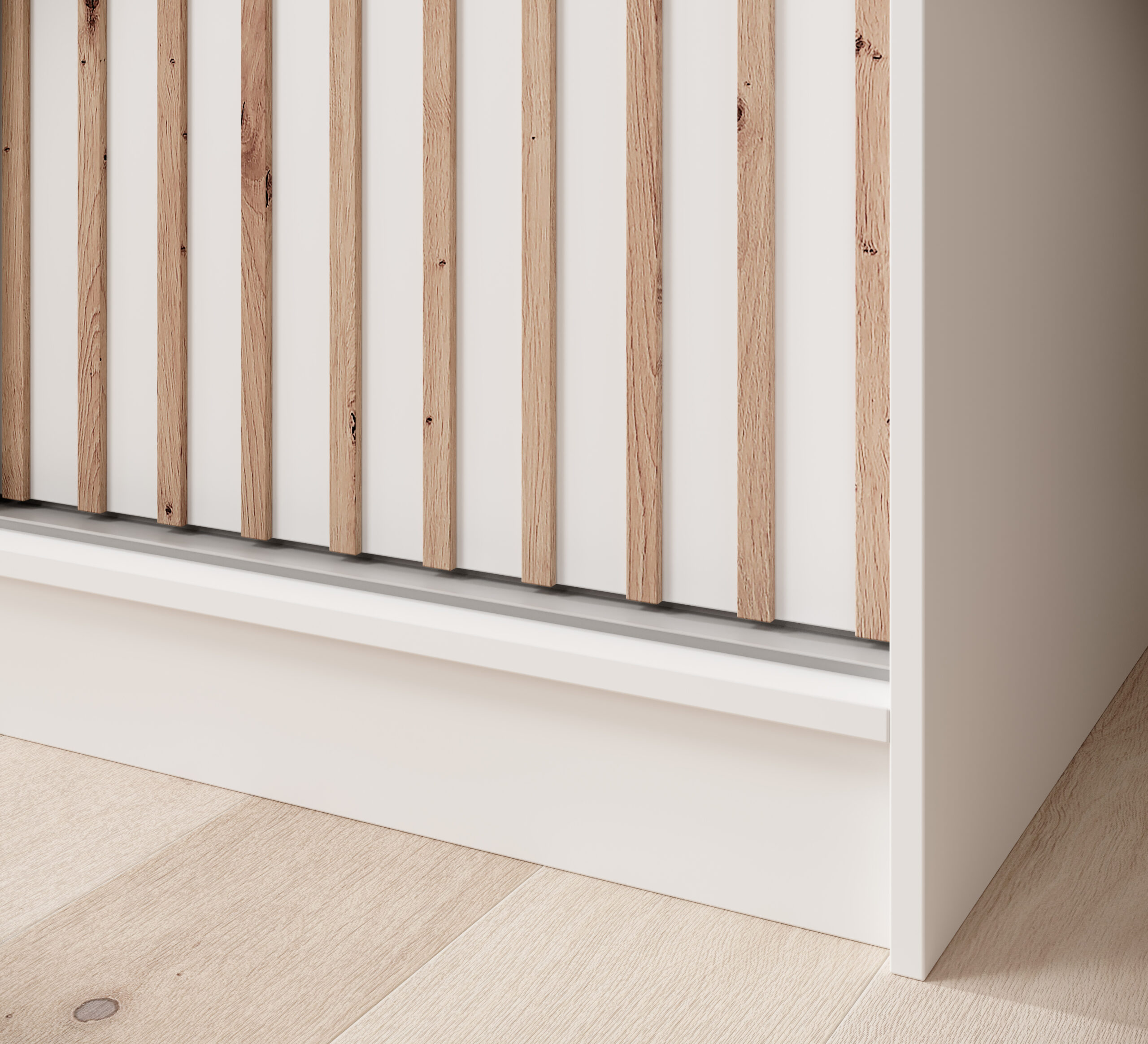 A tolóajtó-rendszernél a sín és a futómechanika kulcsfontosságú. A jó csúszás élménye nem csak „kényelmi extra”: ha simán fut az ajtó, kevésbé kopik, ritkábban szorul be, és hosszabb ideig marad csendes a használat. Ha kétajtós megoldást választasz, fontos, hogy a belső zónák elérését a frontok mozgása ne akadályozza – ezért praktikus a jól osztott belső tér.