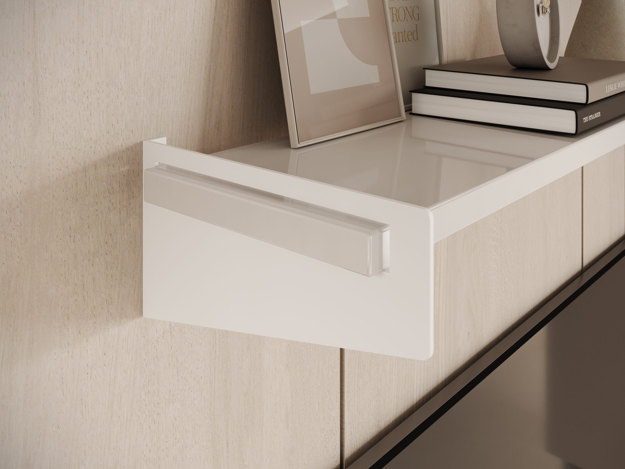 A lebegő polc hatása a letisztultság: a rögzítés nem látszik, a polc „úszik” a falon. Modern terekben, minimalista nappalikban és skandináv stílusban különösen népszerű. A hangsúly a tiszta vonalakon és az egyszerű formán van.