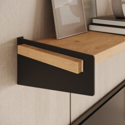 Skandináv terekben a világos fa árnyalatok és a fehér fal a nyerő: itt egy letisztult lebegő polc kevés tárggyal nagyon elegáns. Modern-minimal lakásokban a polc lehet sötétebb, grafitos vagy fekete részletekkel – a kontraszt adja a karaktert. Természetes, meleg stílusban a fa hatású felületek (tölgy/sonoma/artisan jelleg) harmonizálnak legjobban, és a polcon jól mutatnak a natúr textúrák, kerámiák, fonott kosarak.