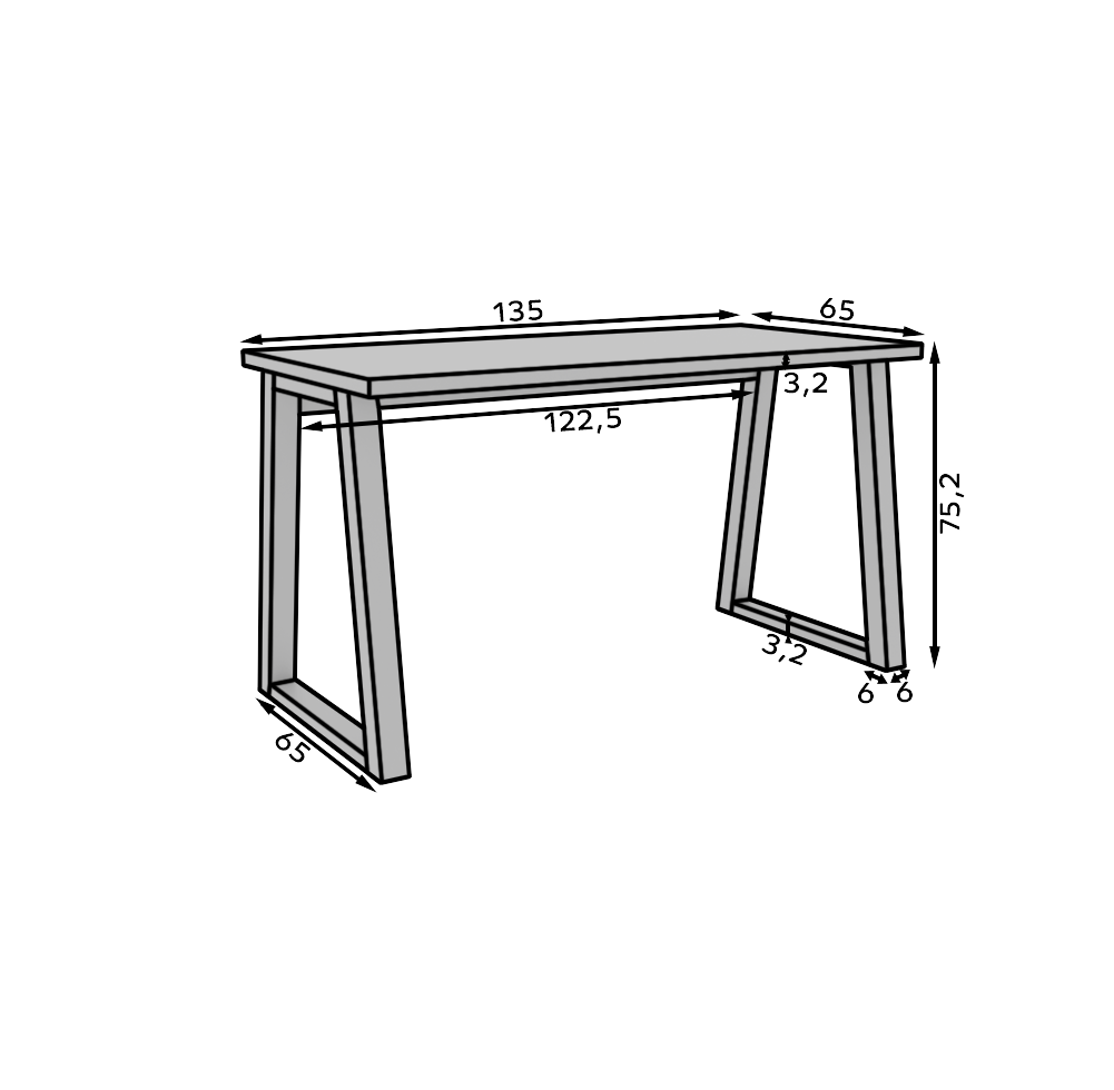 Anyag: Asztallap: 32 mm vastag laminált lap. Rönk: cellás technológia 60×60 Mm + lécek 32×55 Mm.