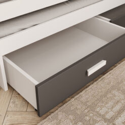 Ha a gyerekszobában kevés a hely, a tárolós megoldások aranyat érnek. Az ágyneműtartós gyermekágy vagy a fiókos kialakítás könnyíti a mindennapokat: elférnek benne az extra takarók, a szezonális ruhák, vagy akár a nagyobb játékok is. A rejtett tároló nemcsak praktikus, hanem vizuálisan is “rendet teremt”, mert kevesebb holmi marad szem előtt.