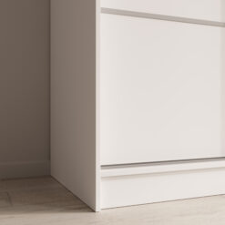 A tolóajtó-rendszernél a sín és a futómechanika kulcsfontosságú. A jó csúszás élménye nem csak „kényelmi extra”: ha simán fut az ajtó, kevésbé kopik, ritkábban szorul be, és hosszabb ideig marad csendes a használat. Ha kétajtós megoldást választasz, fontos, hogy a belső zónák elérését a frontok mozgása ne akadályozza – ezért praktikus a jól osztott belső tér.
