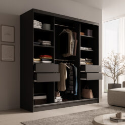 Tolóajtós gardrób Keri 200 tolóajtós szekrény – Fekete