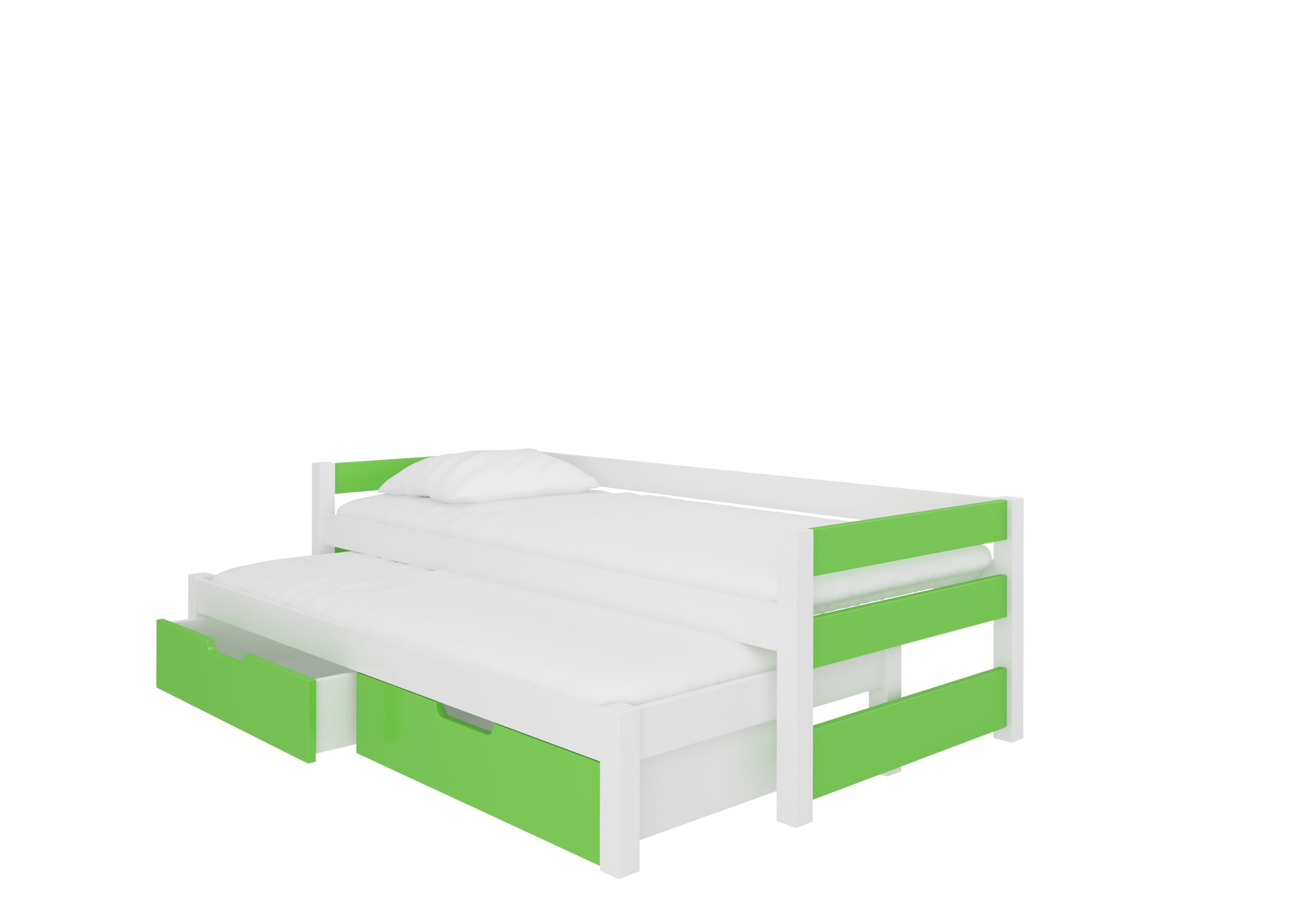 Leírás: A FRAGA kétszemélyes ágy ideális megoldás két testvér szobájában. Tökéletesen megfelel váratlan vendégek érkezésekor is. Az ágy két praktikus és funkcionális ágyneműtartó fiókkal, valamint tartós és masszív kerettel rendelkezik. Az ágyhoz habmatrac készlet tartozik pamut huzattal, amelyek cipzárral levehetők.