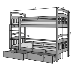 Leírás: A két személyes emeletes ágy ADA tökéletes megoldás helymegtakarításra kis gyermekszobában. A modell két méretben és számos színben elérhető, így minden berendezéshez illik. A bútor létrával és két praktikus, funkcionális ágyneműtartóval rendelkezik. Matracok nem tartoznak az ágyhoz.
