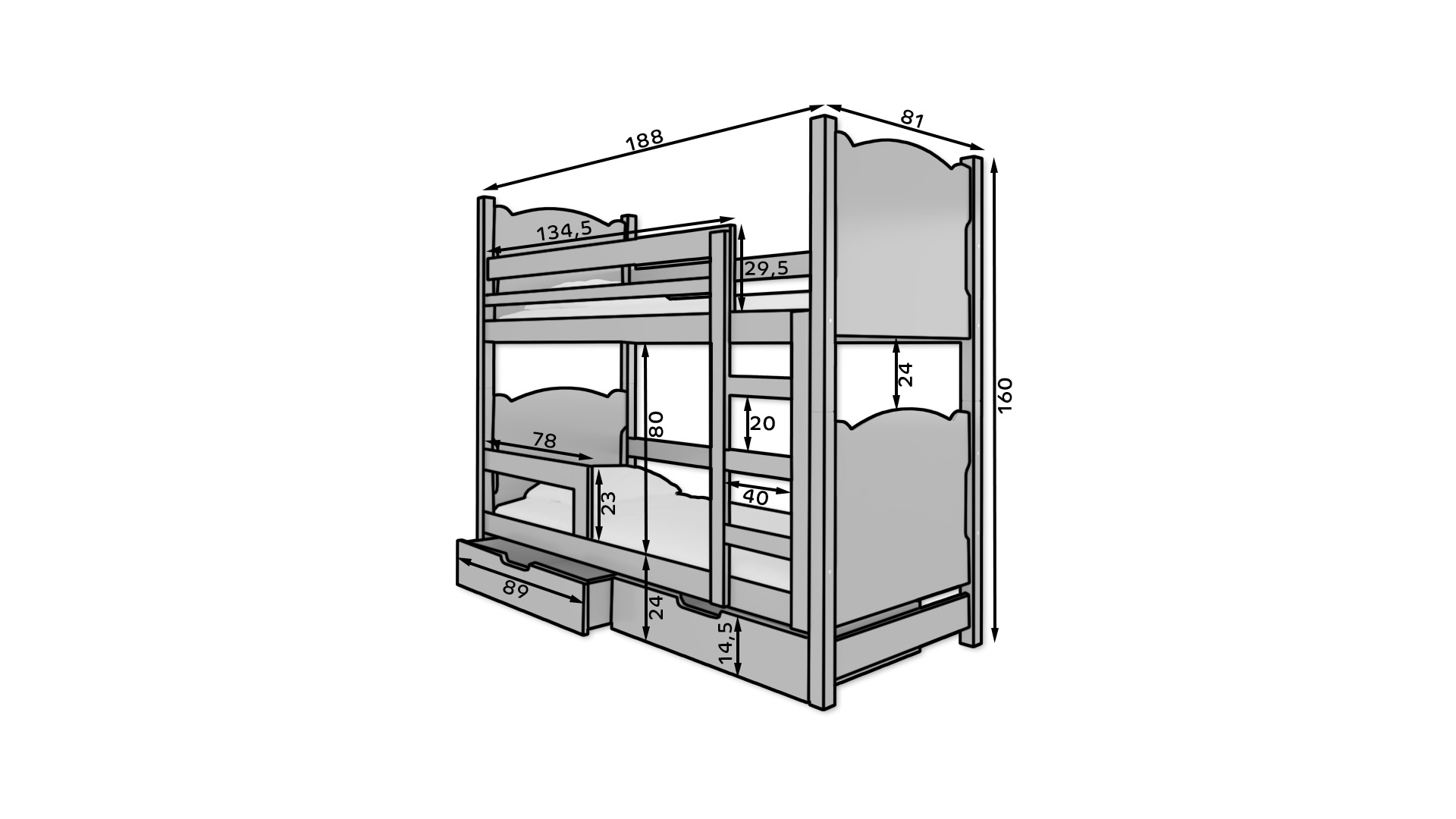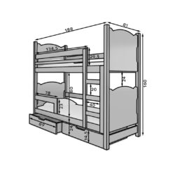 Leírás: A MARABA kétszemélyes emeletes ágy kiváló ötlet a helymegtakarításhoz egy kisebb gyerekszobában. A bútordarab létrával és két tágas, funkcionális ágyneműtartó fiókkal rendelkezik. Emellett mindkét szinten biztonsági korlátok vannak felszerelve, amelyek növelik az alvás közbeni biztonságot. Az ágyhoz habmatrac készlet tartozik pamut huzattal, amelyek cipzárral levehetők.
