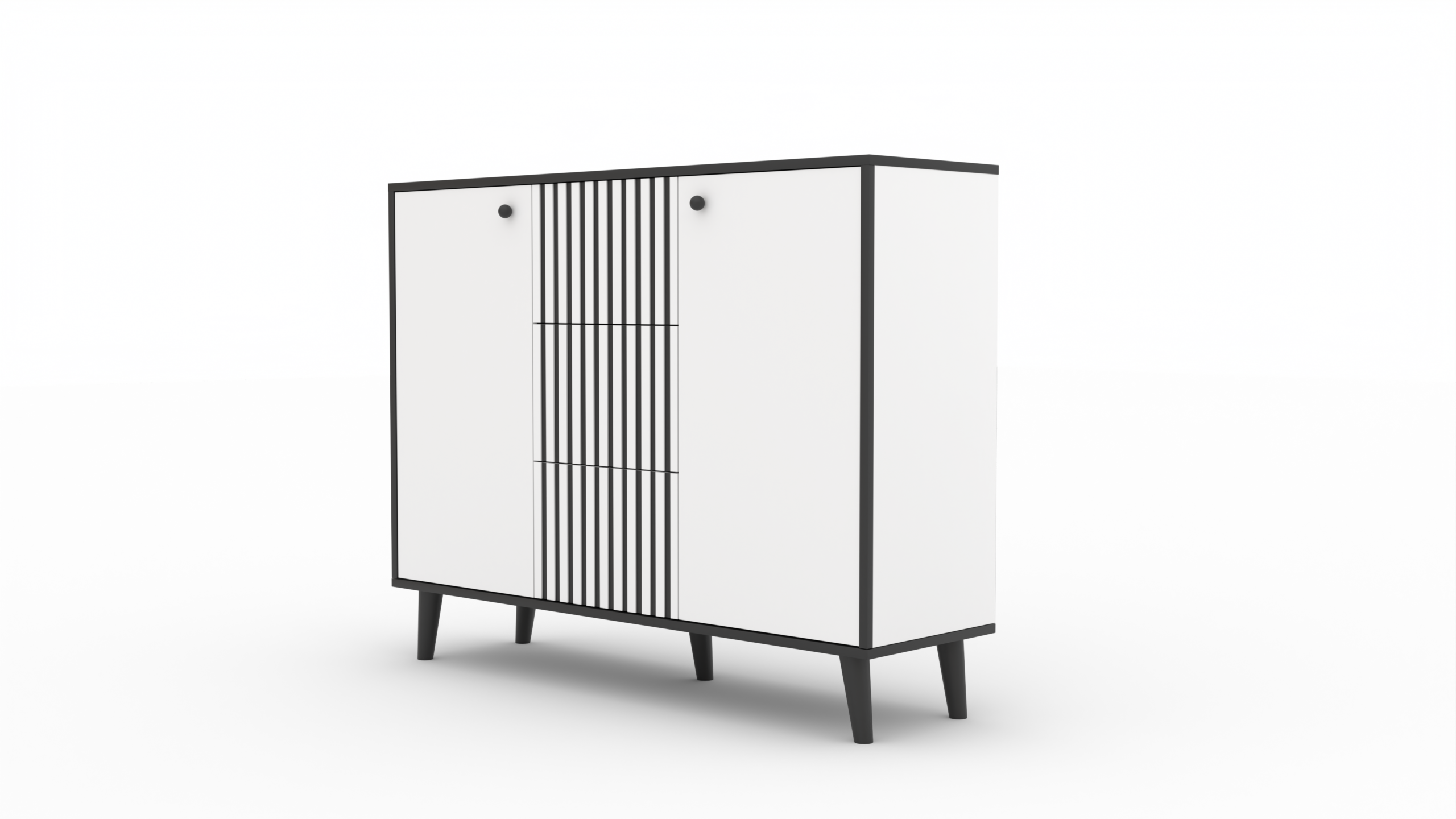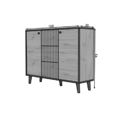 Leírás: A FADI komód a minimalista design és a könnyed forma tökéletes kombinációja. A bájt a magas falábak adják hozzá, amelyeknek köszönhetően a szerkezet stabil és masszív. Három tágas fiókja lehetővé teszi, hogy apróbb tárgyakat vagy dokumentumokat rejtsen el, míg két oldalsó szekrény a középen lévő polccal további helyet biztosít. A FADI komód tökéletes lesz nappalijába, hálószobájába vagy előszobájába.