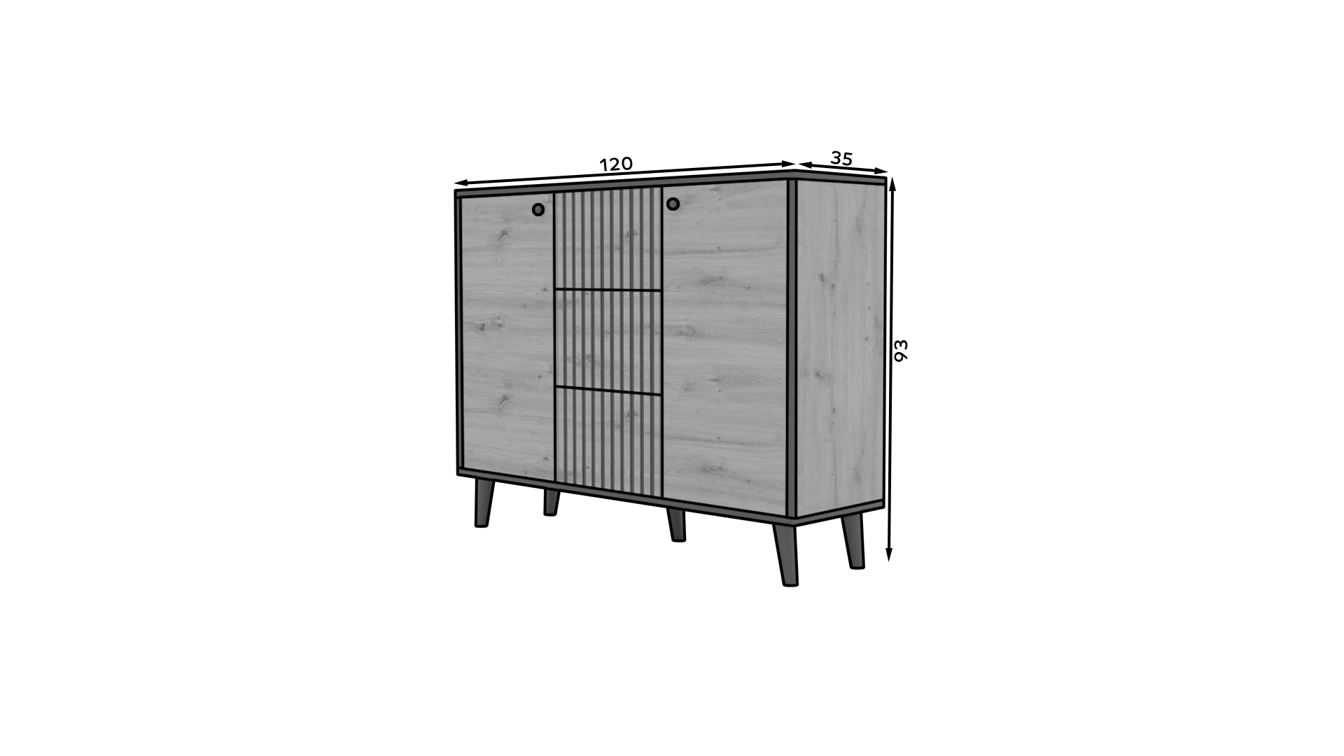 Leírás: A FADI komód a minimalista design és a könnyed forma tökéletes kombinációja. A bájt a magas falábak adják hozzá, amelyeknek köszönhetően a szerkezet stabil és masszív. Három tágas fiókja lehetővé teszi, hogy apróbb tárgyakat vagy dokumentumokat rejtsen el, míg két oldalsó szekrény a középen lévő polccal további helyet biztosít. A FADI komód tökéletes lesz nappalijába, hálószobájába vagy előszobájába.