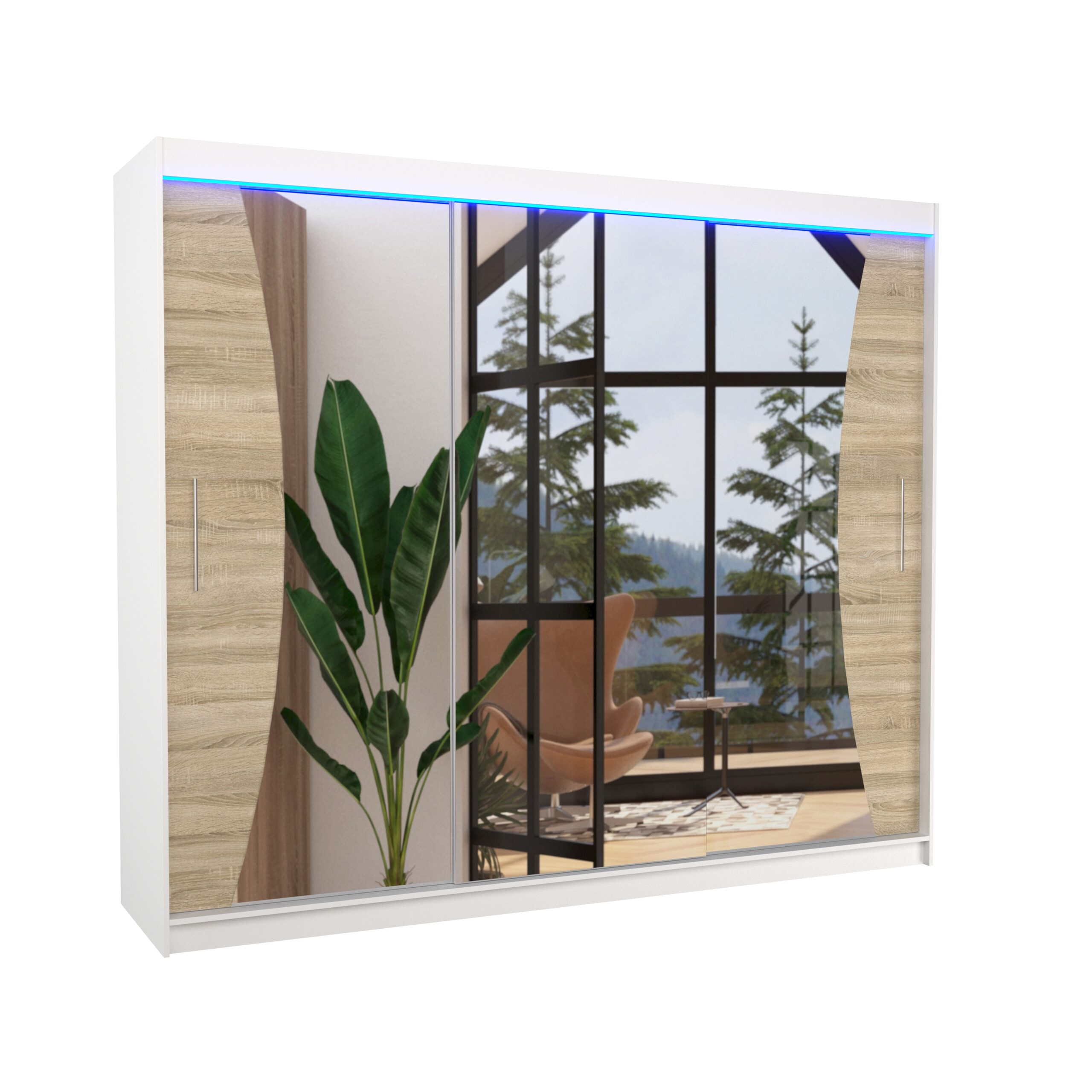 Tolóajtós gardrób LED tükrös tolóajtós szekrény DIEGO 250 – Sonoma