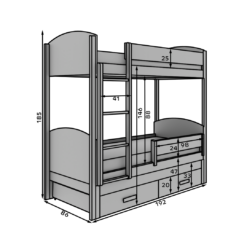 Leírás: A Leia gyerekágy egy praktikus megoldás, amely három gyermek számára biztosít alvóhelyet. Szerkezete két szintből és egy kihúzható alsó fekvőfelületből áll. A masszív vázszerkezet stabilitást és biztonságot nyújt, míg a beépített létra megkönnyíti a felső szint elérését. A felső ágyat körülvevő védőkorlátok gondoskodnak a gyermek biztonságos alvásáról. Az ágy emellett tágas fiókokkal is rendelkezik, amelyek praktikus tárolóhelyet kínálnak ágynemű, játékok vagy más gyermekholmik számára. A Leia ágy a funkcionalitás és a modern dizájn tökéletes kombinációja – ideális választás minden gyerekszobába.