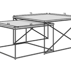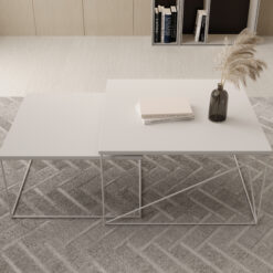 Leírás: A Licco 2 az 1-ben dohányzóasztal egy stílusos és funkcionális bútordarab, amely biztosan eleganciát kölcsönöz bármely belső térnek. Modern, minimalista dizájnja jól illeszkedik a legkülönfélébb lakberendezési stílusokhoz, a kiváló minőségű anyagok pedig garantálják a tartósságot és a robusztusságot. A négyzet alakú lap bőséges helyet kínál a kávénak, könyveknek, dekorációknak és egyéb tárgyaknak, a drótlábak pedig könnyed és modern hangulatot kölcsönöznek az asztalnak. A lábakhoz használt drót masszív és stabil, miközben finom ipari jelleget kölcsönöz az asztalnak. Az asztal könnyen átalakítható vagy különböző konfigurációkban használható, így nagyon praktikus. Két különálló asztalra bontható, ami több lehetőséget biztosít az elrendezéshez.