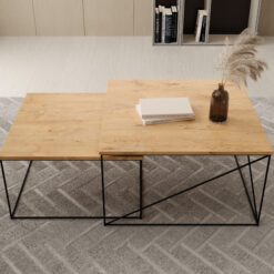Leírás: A Licco 2 az 1-ben dohányzóasztal egy stílusos és funkcionális bútordarab, amely biztosan eleganciát kölcsönöz bármely belső térnek. Modern, minimalista dizájnja jól illeszkedik a legkülönfélébb lakberendezési stílusokhoz, a kiváló minőségű anyagok pedig garantálják a tartósságot és a robusztusságot. A négyzet alakú lap bőséges helyet kínál a kávénak, könyveknek, dekorációknak és egyéb tárgyaknak, a drótlábak pedig könnyed és modern hangulatot kölcsönöznek az asztalnak. A lábakhoz használt drót masszív és stabil, miközben finom ipari jelleget kölcsönöz az asztalnak. Az asztal könnyen átalakítható vagy különböző konfigurációkban használható, így nagyon praktikus. Két különálló asztalra bontható, ami több lehetőséget biztosít az elrendezéshez.