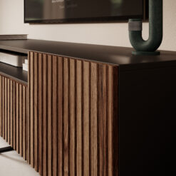 Az alacsony komód jellegű TV bútorok nagy előnye, hogy optikailag nyugodtabbá teszik a teret. Különösen akkor előnyösek, ha nagy képernyős tévét használsz, vagy a falon van a TV, és alá szeretnél egy hosszú, elegáns felületet dekorációknak, hangprojektornak vagy hangfalaknak. Egy alacsony, széles bútor stabil alapot ad, és segít „összefogni” a nappali látványát – mintha a TV fal saját kompozíciót kapna.