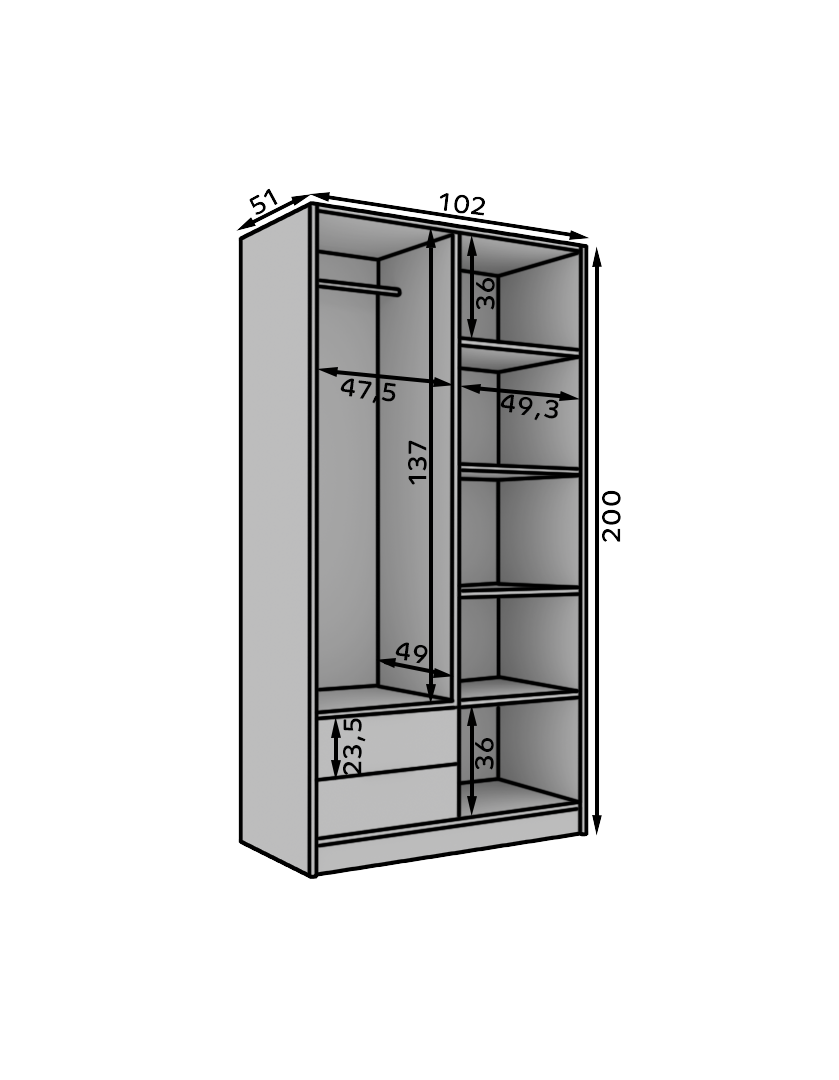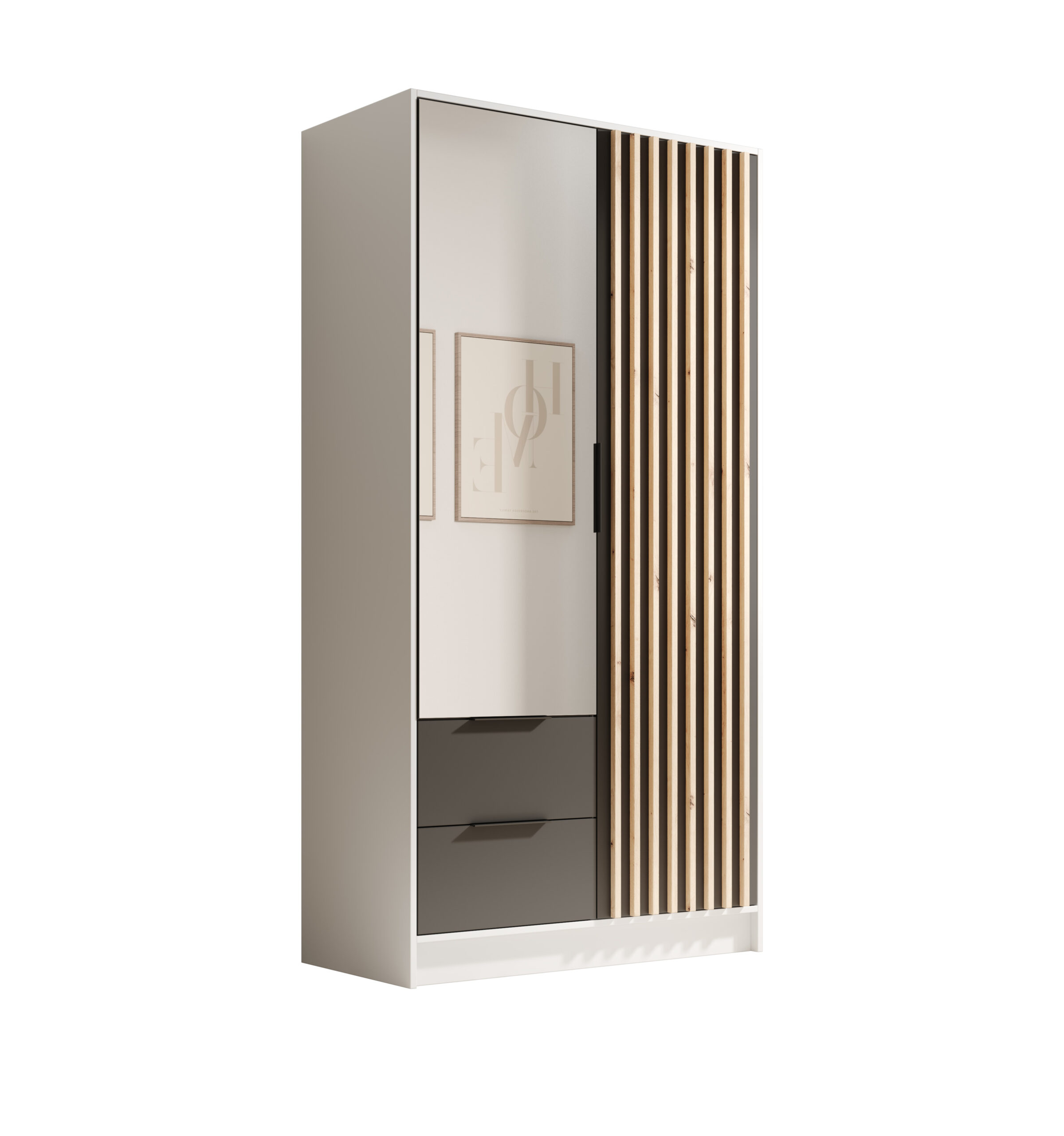 Leírás: A Neri nyitható szekrény elegáns és funkcionális, tökéletes választás modern és klasszikus belső terekhez egyaránt. A széles színválasztéknak köszönhetően mindenki megtalálja a stílusához tökéletesen illeszkedő verziót. A Neri szekrény kiemelkedik a dekoratív lamellákkal a fronton és a nagy tükörrel, amely optikailag megnöveli a teret és könnyed hatást ad neki. A szekrény három praktikus méretben kapható: 100 cm – kompakt, ideális kisebb helyiségekhez, 150 cm – tökéletes kompromisszum a hely és a méret között, 200 cm – tágas verzió, amely ideálisan alkalmas nagyobb ruhásszekrény tárolására. Minden verzió a használhatóságot és az esztétikát figyelembe véve készült, amely bárhol feldobja a hálószobát vagy gardróbot.
