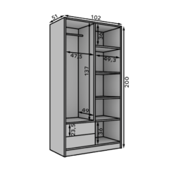 - Belmagasság kihasználása: magasabb gardrób esetén felülre mehetnek a ritkán használt dobozok, takarók.