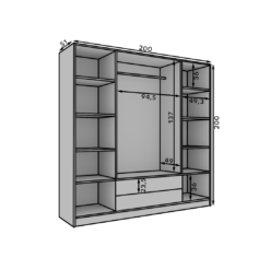 - Belmagasság kihasználása: magasabb gardrób esetén felülre mehetnek a ritkán használt dobozok, takarók.