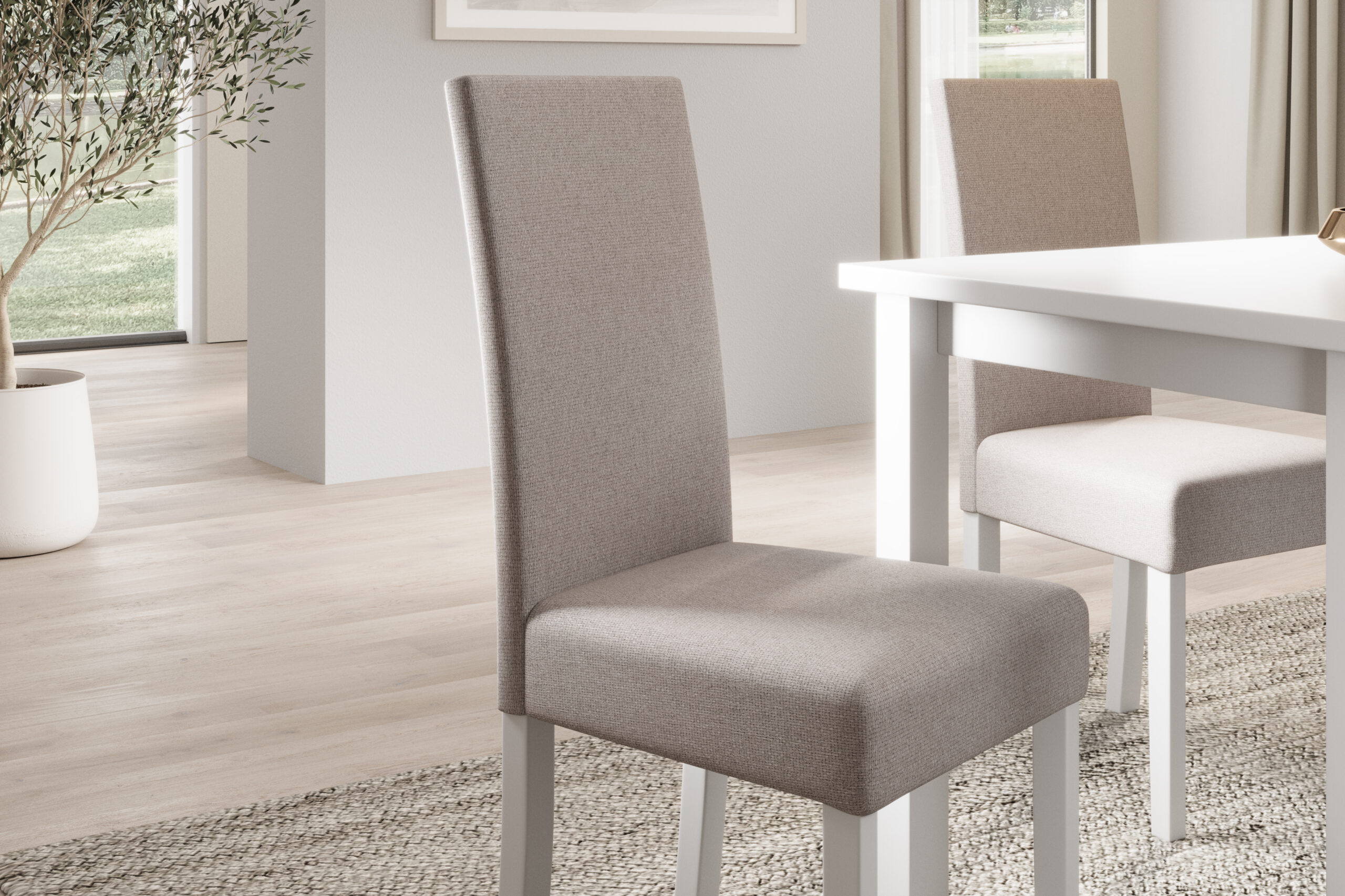 Leírás: A Nola II szék a modern elegancia és az időtlen egyszerűség ötvözete, amely tökéletesen illik a legkülönfélébb enteriőrökbe. Klasszikus formája, finoman ívelt háttámlája és kárpitozott ülőfelülete kényelmet biztosít még hosszabb használat során is, miközben harmóniát és esztétikai egyensúlyt visz a térbe. Univerzális stílusának köszönhetően a szék kiválóan megállja a helyét az étkezőben, a nappaliban, de akár irodai vagy kereskedelmi környezetben is. Masszív szerkezete stabilitást és tartósságot garantál, a gondosan megválasztott anyagok pedig kiemelik a kivitelezés magas minőségét. A Nola II ideális választás azok számára, akik értékelik a kényelmet, a funkcionalitást és a visszafogott formatervezést.