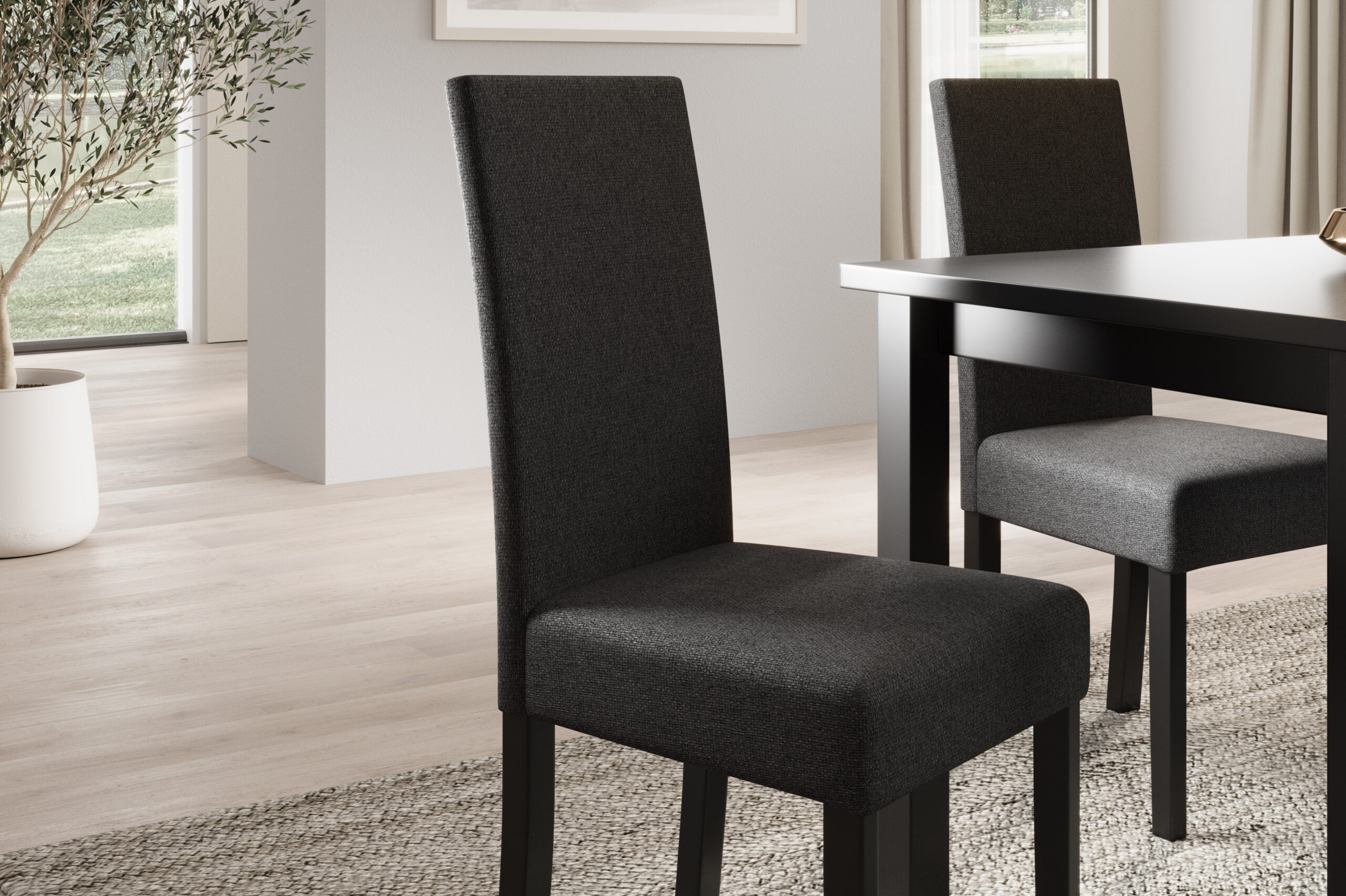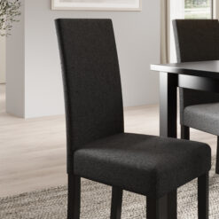 A fekete színű ülőhelyek az egyik legsokoldalúbb választások: világos fa asztallal kontrasztos és modern, sötétebb asztallal pedig elegáns és összefogott. Ha szereted a letisztult, prémium hatást, ez egy stabil “alap”, amit könnyű világítással és kiegészítőkkel felöltöztetni.