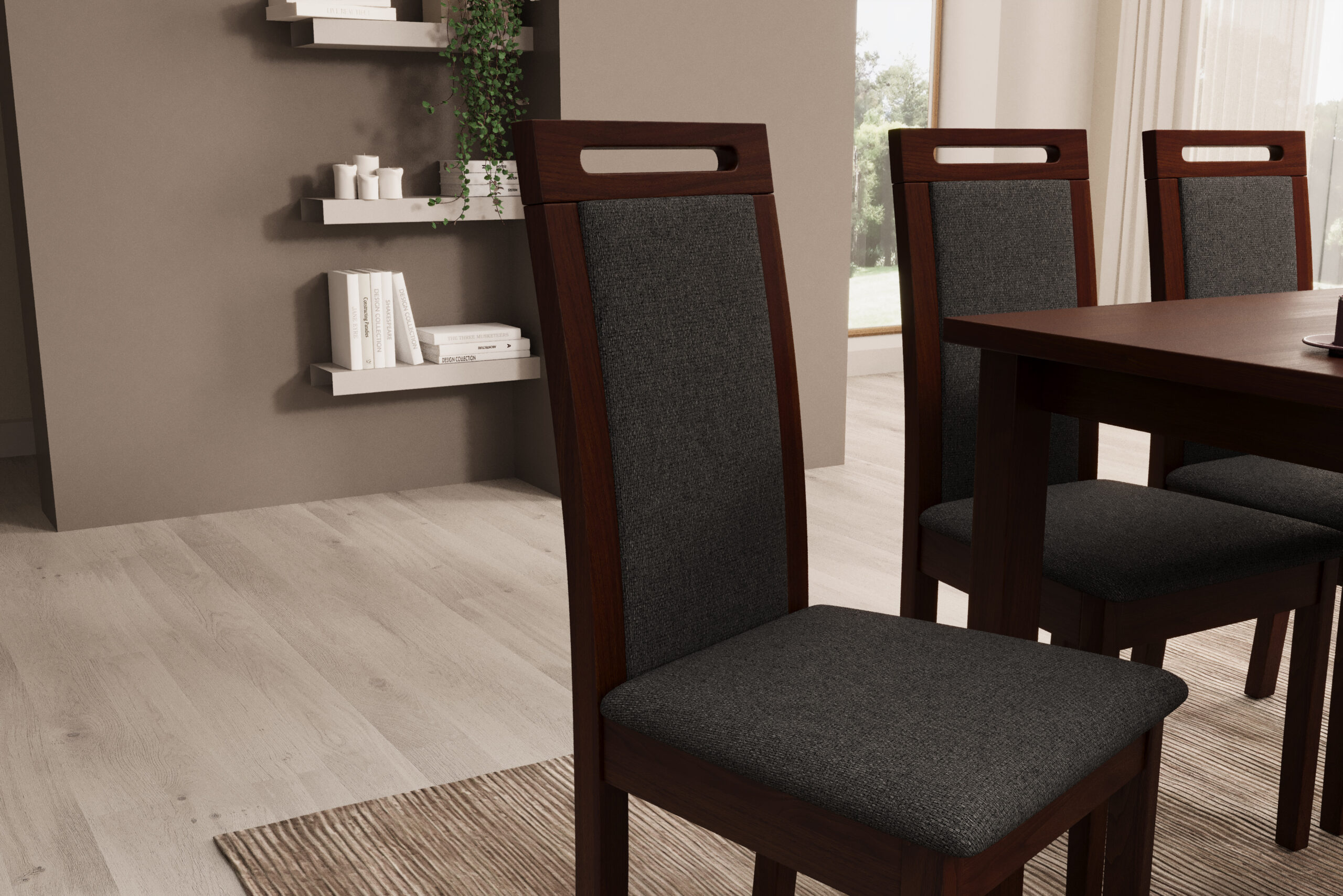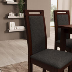 Leírás: A Nola VI szék a modern formatervezés és a funkcionalitás ötvözete, amely tökéletesen megállja a helyét bármilyen enteriőrben – a minimalista étkezőtől kezdve egészen az elegáns irodai térig. A modell jellegzetes eleme a háttámla felső részén található, látványosan kivágott fogantyú, amely egyedi megjelenést kölcsönöz a széknek, és megkönnyíti annak áthelyezését. A kárpitozott ülőfelület és háttámla magas szintű kényelmet biztosít, míg a masszív szerkezet stabilitást és hosszú élettartamot garantál. A Nola VI ideális választás azok számára, akik olyan bútort keresnek, amely egyszerre praktikus és dekoratív. Univerzális formájának köszönhetően harmonikusan illeszkedik a különböző stílusú berendezésekhez, finom, mégis karakteres kiegészítője a térnek.