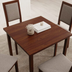A fa hatású étkező asztal szinte mindenhez passzol: fehér, bézs, szürke, fekete kárpitokkal is jól működik, így az ülőbútor lehet az, amivel finoman változtatsz a hangulaton. Merészebb megoldás, ha az ülőfelület adja a színt (például zöld, kék, terrakotta árnyalat), és az asztal marad semleges.
